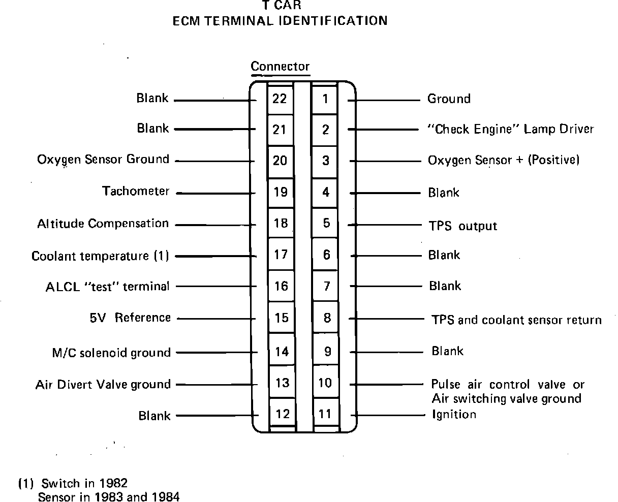 Fig. 014 1983 ECM WIRING TERMINAL IDENTIFICATION: