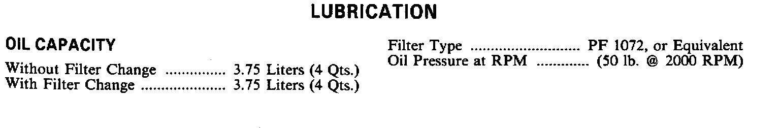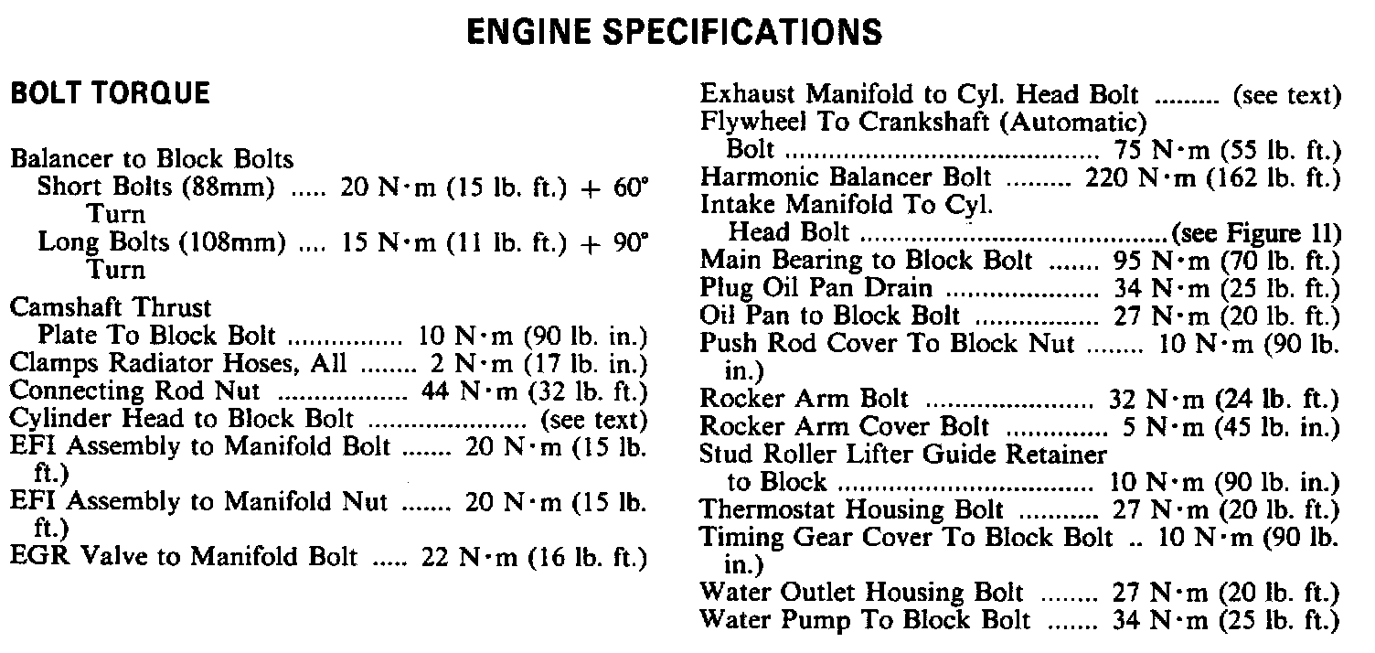 Continued Engine Specifications:
