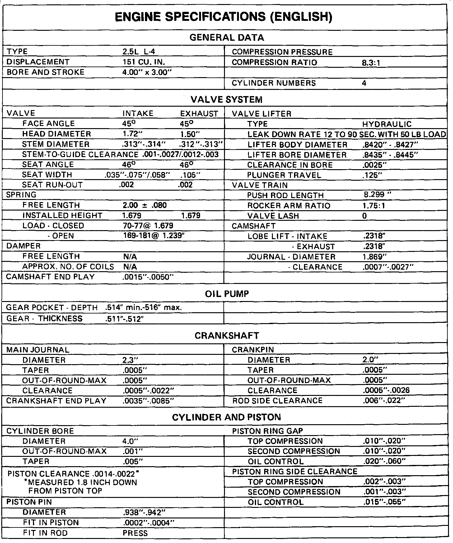 Engine Specifications: