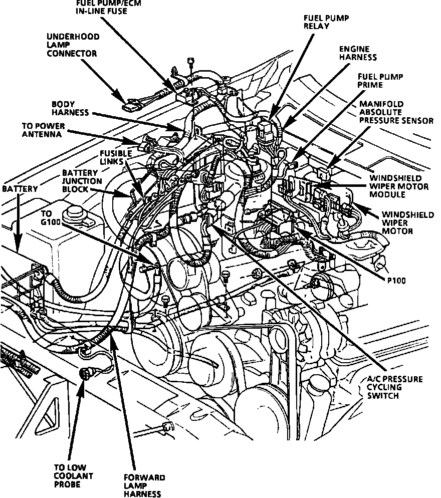 Rear RH Side Of Engine Compartment, Below MAP Sensor