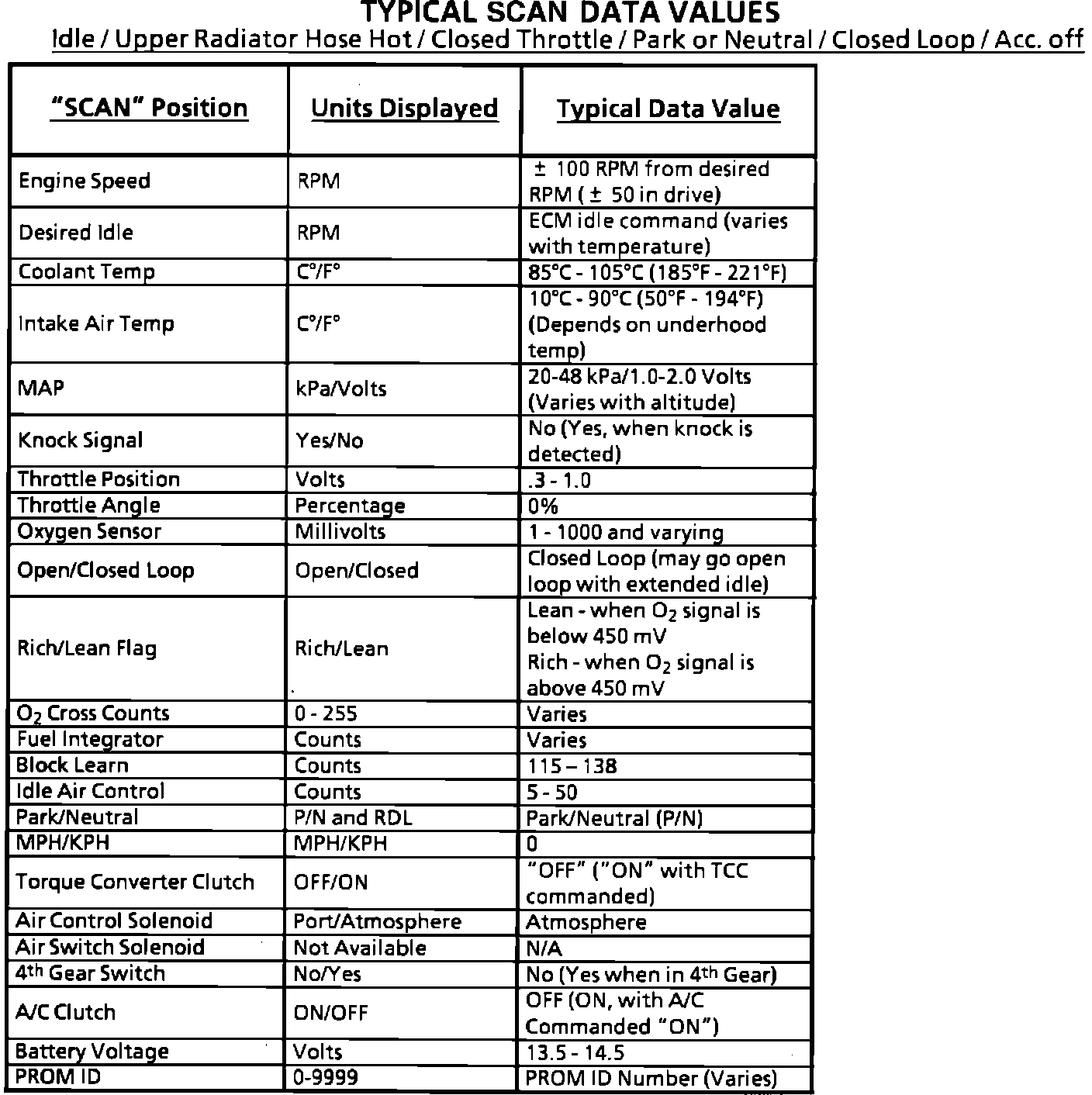Typical Scan Data Values: