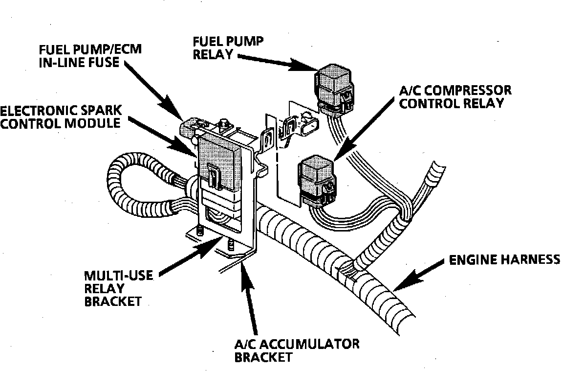 Attached to Multi-use Relay Bracket, RH Rear Engine Compartment