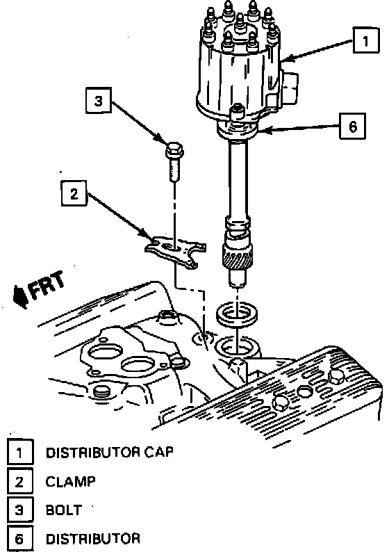 8. Install distributor hold-down clamp and distributor clamp bolt. Tighten clamp bolt to 36 N-m (27 lb. ft.).