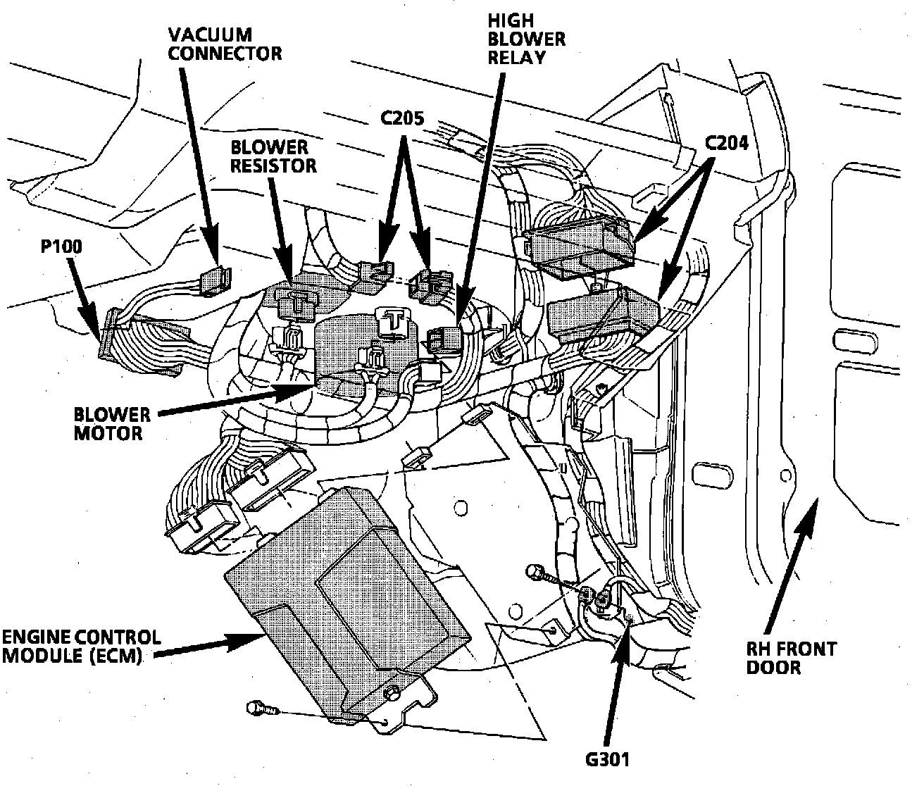 Component Location View. RH Lower Instrument Panel: