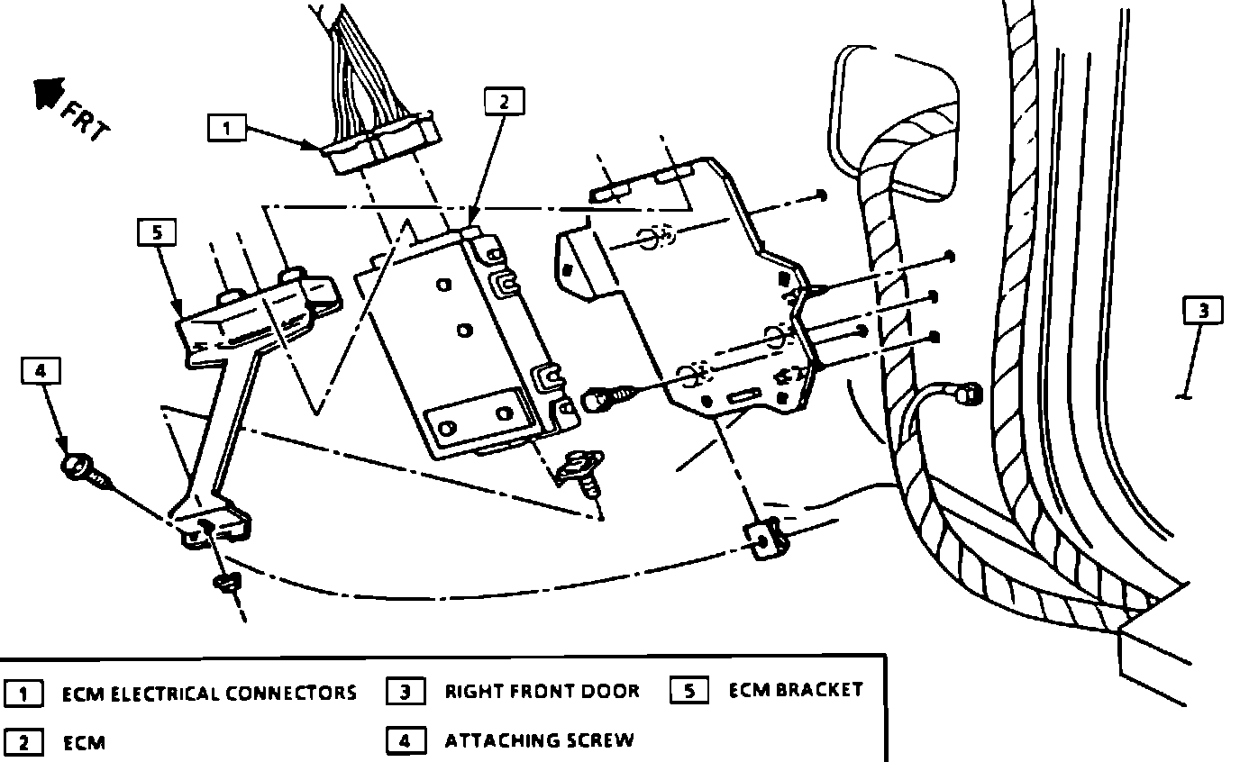 When replacing a production ECM with a service ECM, transfer the broadcast code and production number from the production unit to the service unit. Also, during replacement, the PROM, CALPACK and if equipped, the MEMCAL must be removed from the ECM being replaced and transferred to the new unit. Refer to PROM, CALPAK, and MEMCAL for procedures.