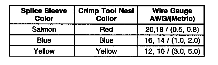 Crimp And Seal Splice Table: