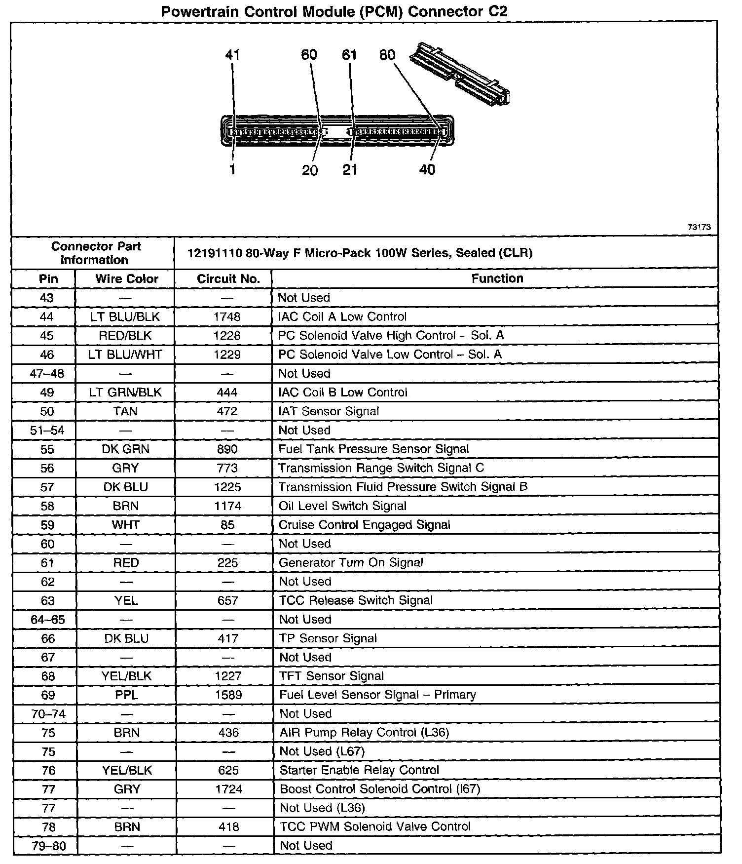Powertrain Control Module (PCM) Connector C2 Part 2: