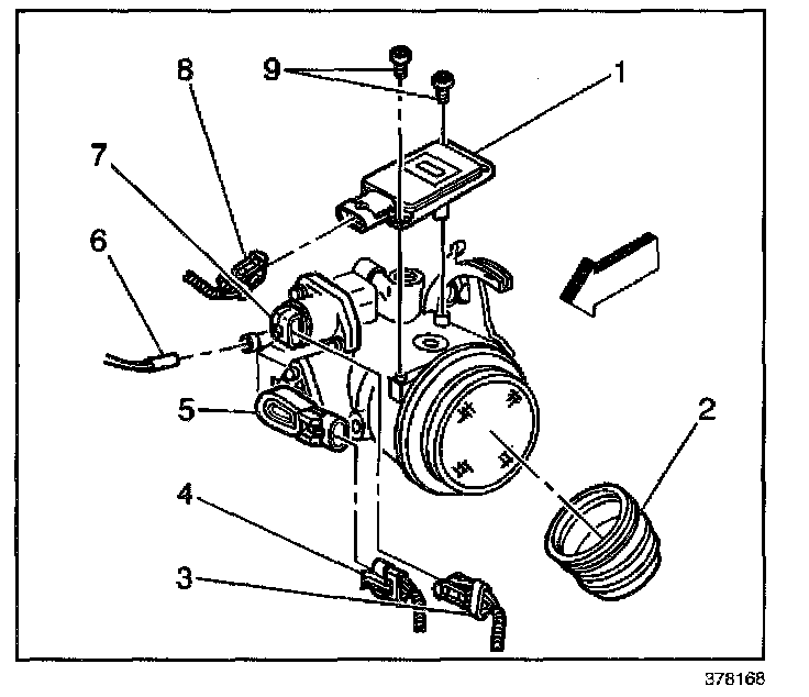 IMPORTANT: The mass air flow (MAF) sensor on this engine is attached to the throttle body assembly.