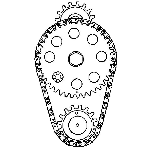 ^ Install the timing chain on the sprockets. Align the timing marks.