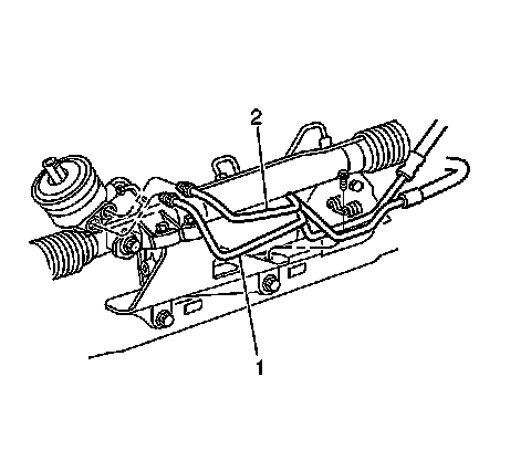 10. Install the brackets in order to retain the power steering lines (1, 2) at the engine frame.