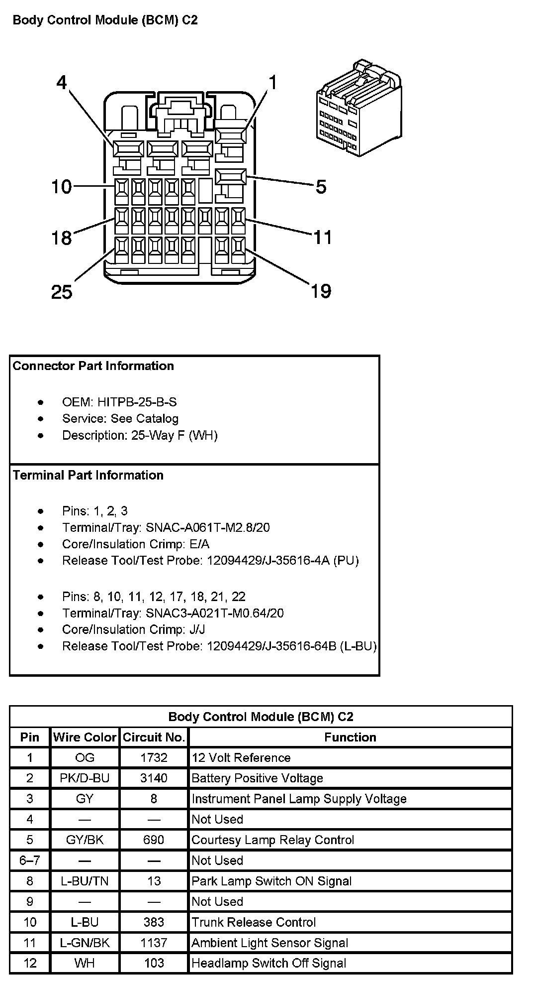 Body Control Module (BCM) C2 (Pin 13 - Pin 25):