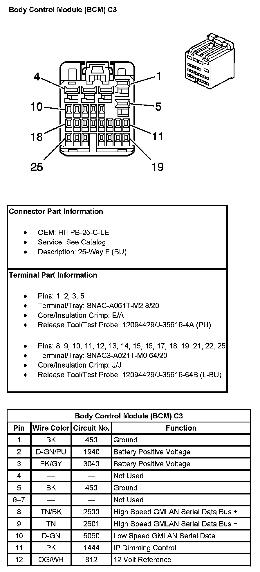 Body Control Module (BCM) C3 (Pin 1 - Pin 12):