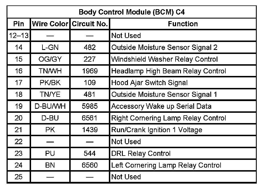 Body Control Module (BCM) C4 (Pin 12 To 25):