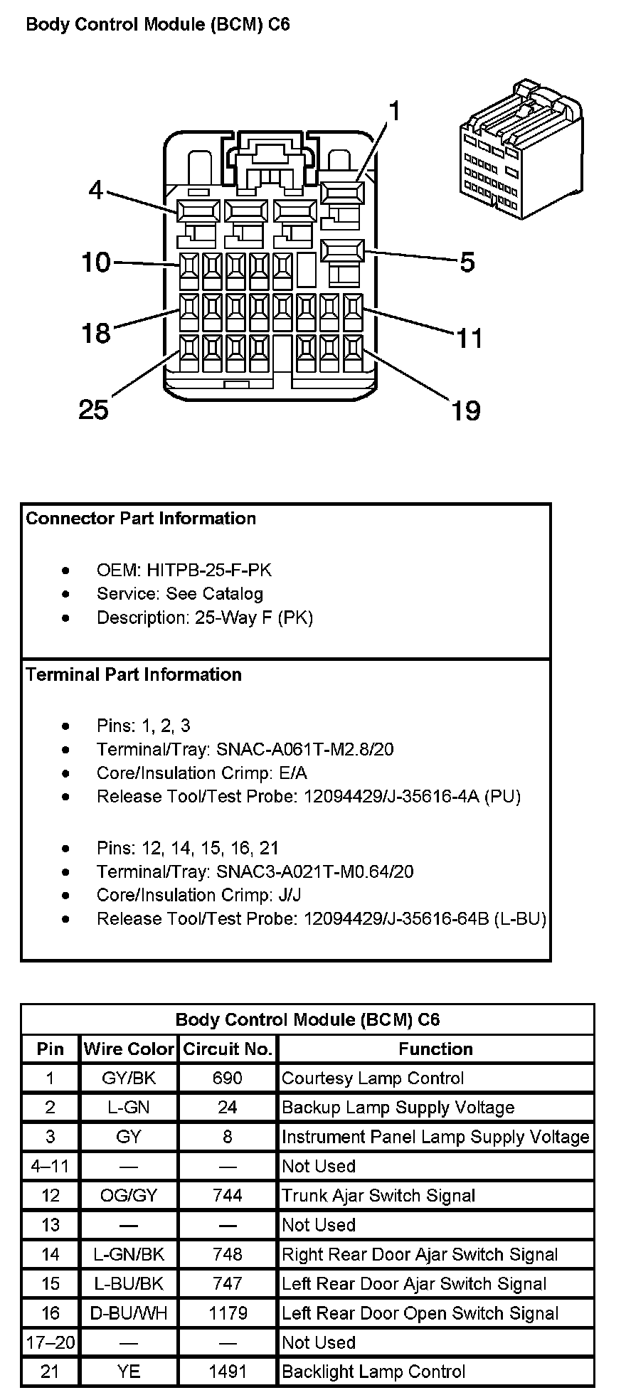 Body Control Module (BCM) C6 (Pin 1 To 21):