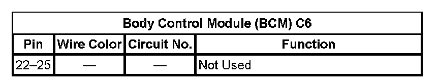 Body Control Module (BCM) C6 (Pin 22 To 25):