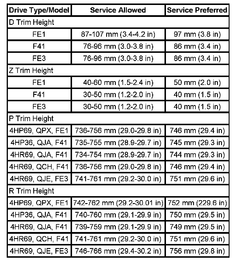 Trim Height Specifications