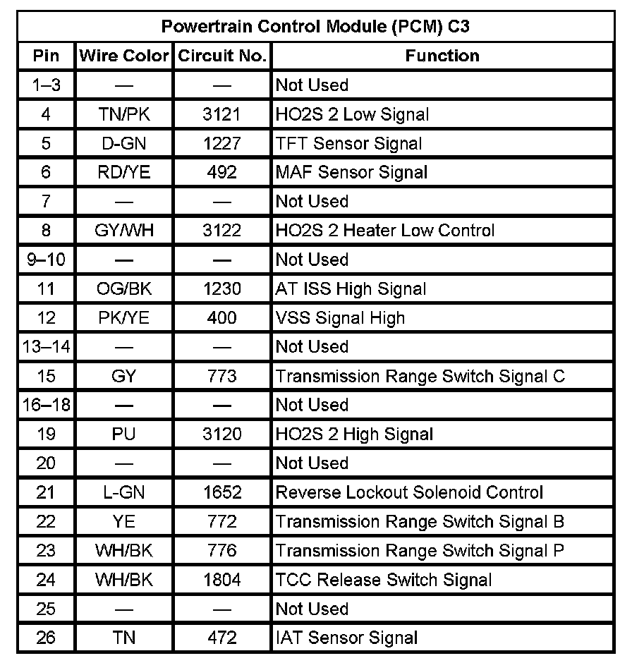 Powertrain Control Module (PCM) C3 (Pin 1 To 26):
