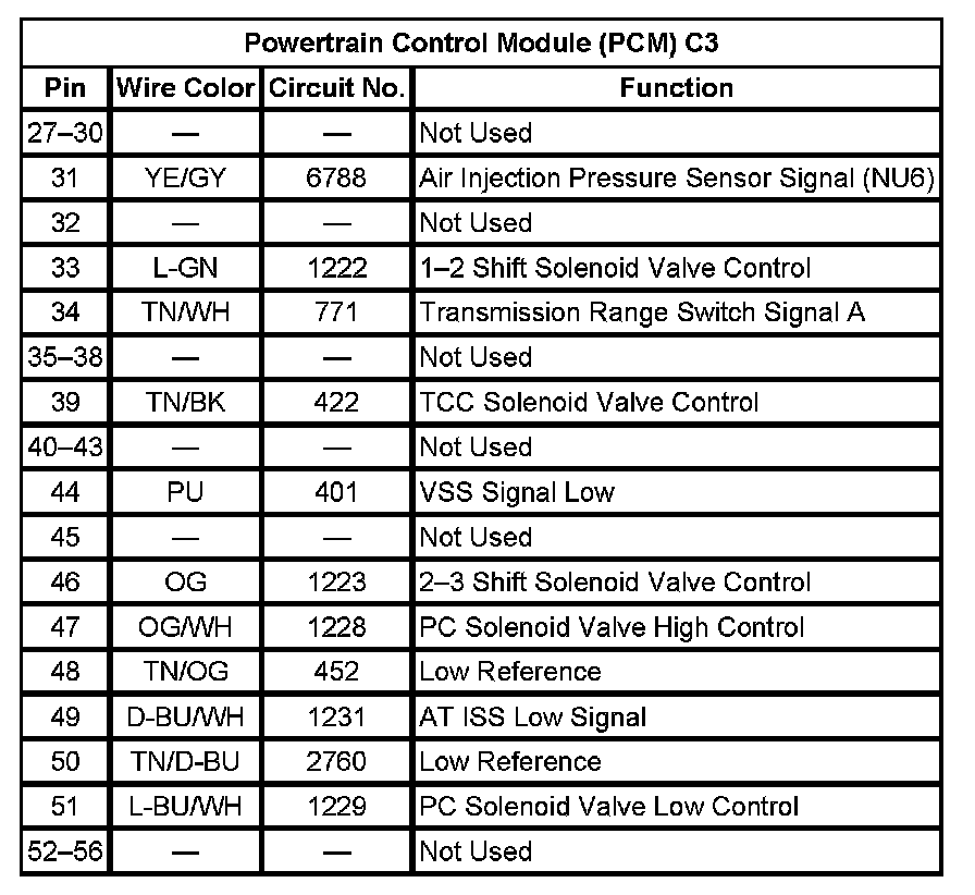 Powertrain Control Module (PCM) C3 (Pin 27 To 56):