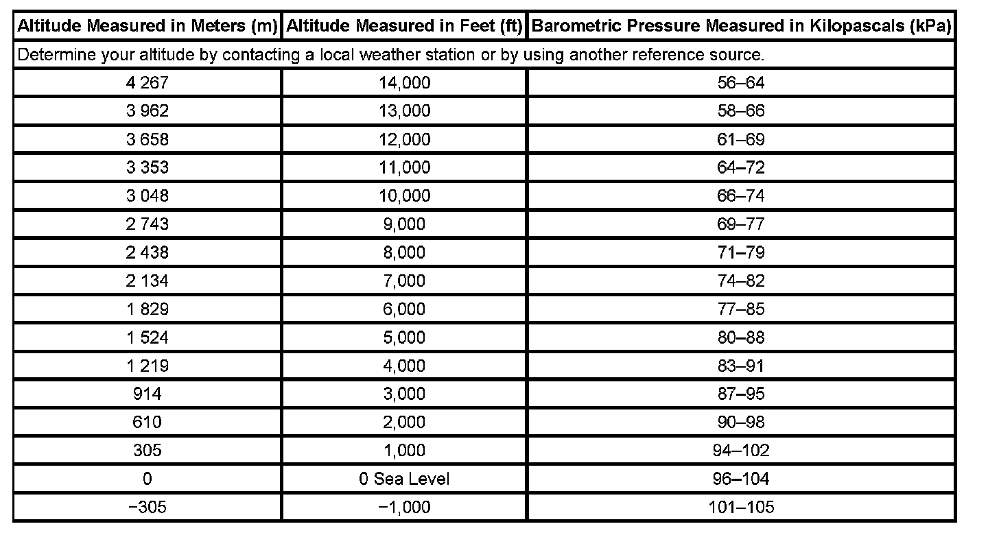 Altitude Versus Barometric Pressure