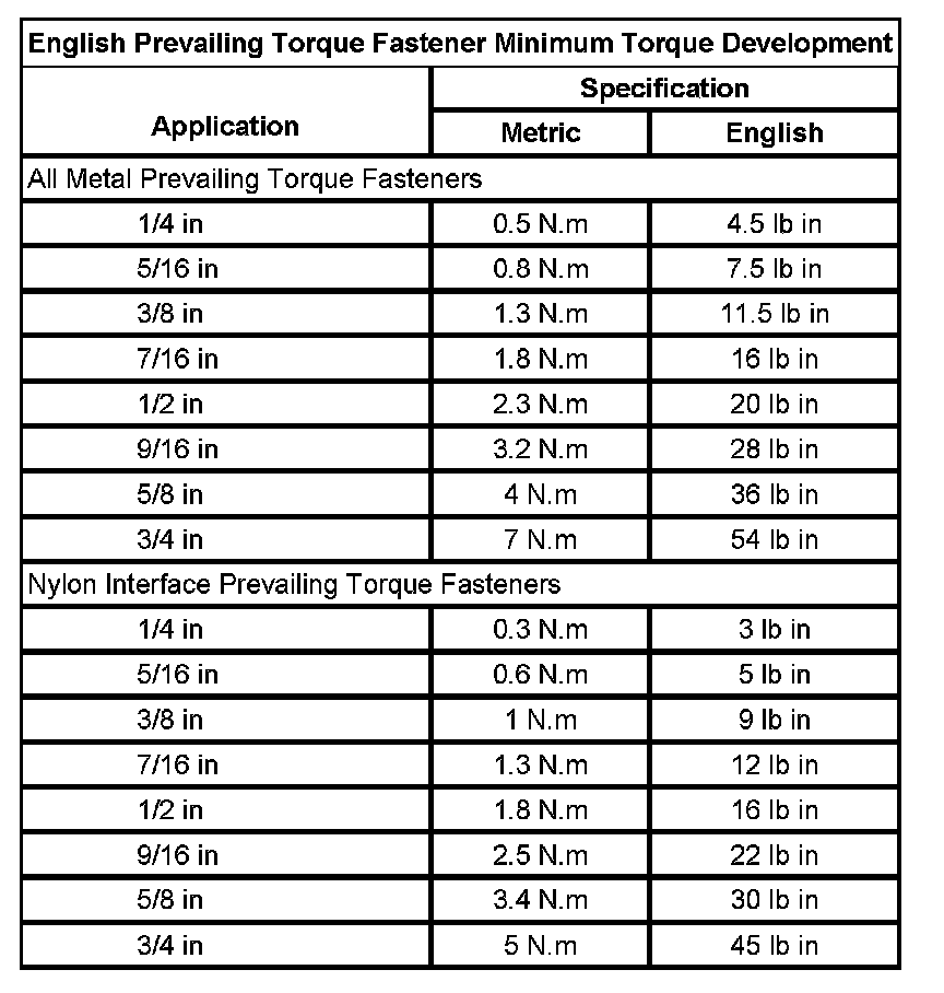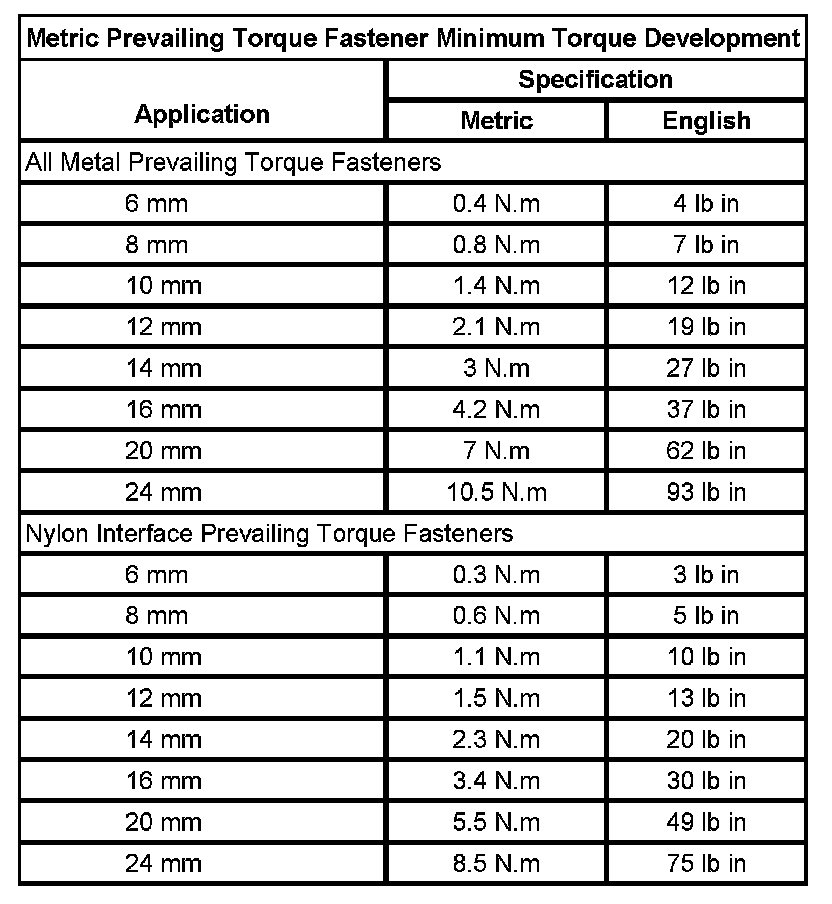 Prevailing Torque Fasteners
