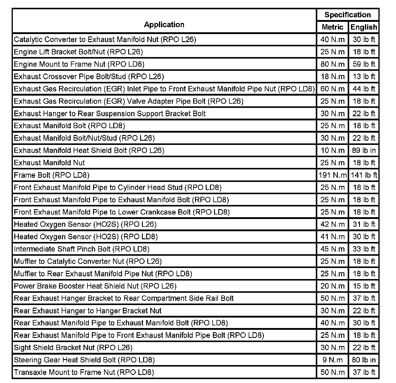 Fastener Tightening Specifications: