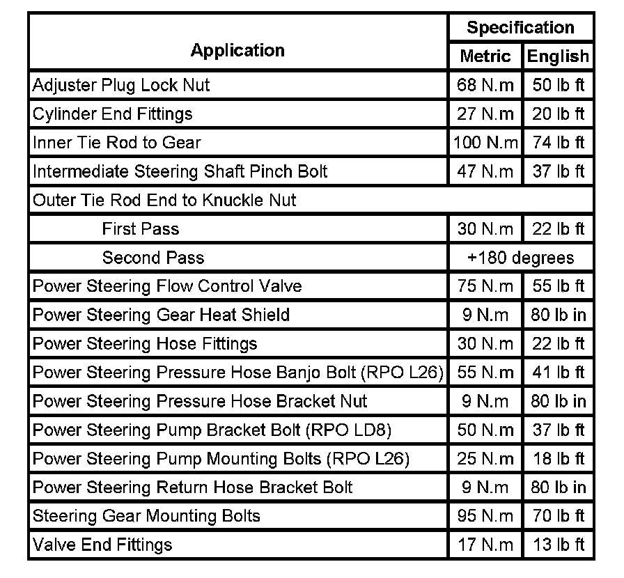 Fastener Tightening Specifications: