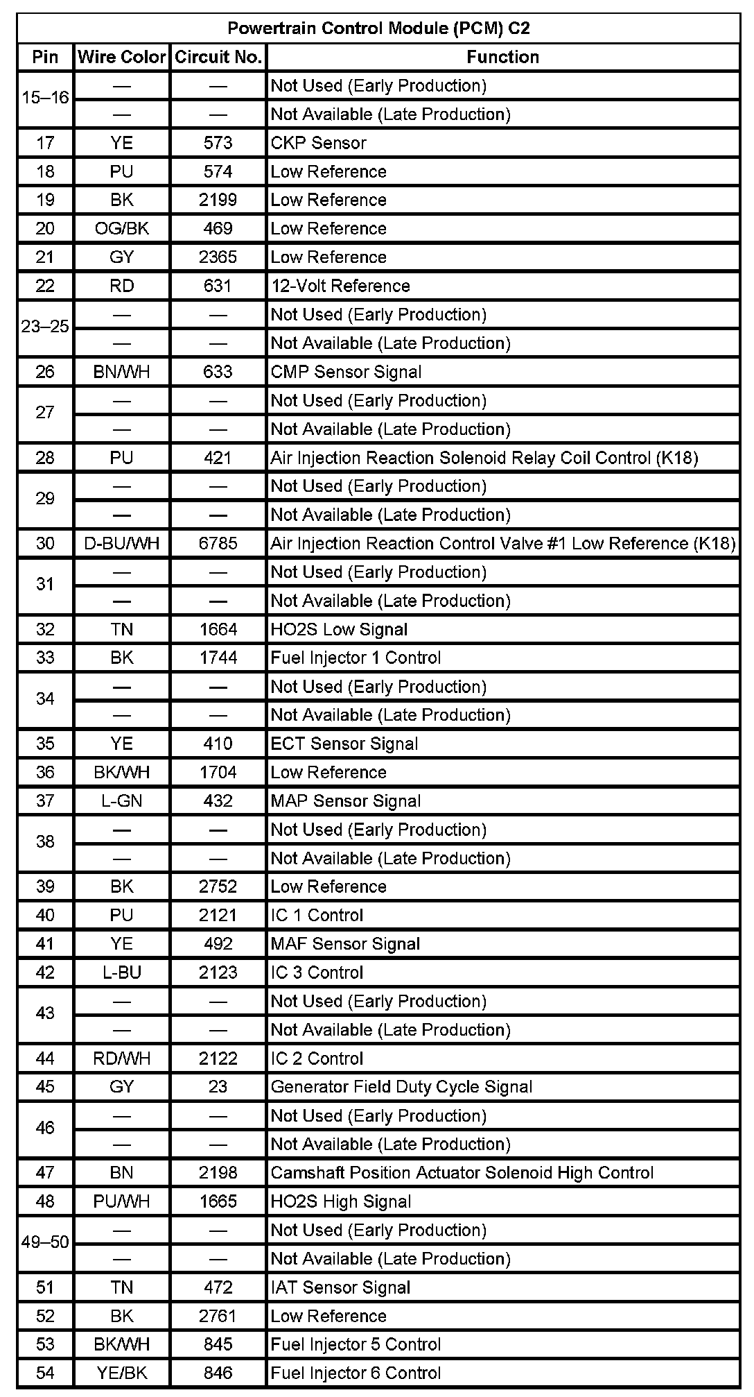 Powertrain Control Module (PCM) C2 (Pin 15 To 54):