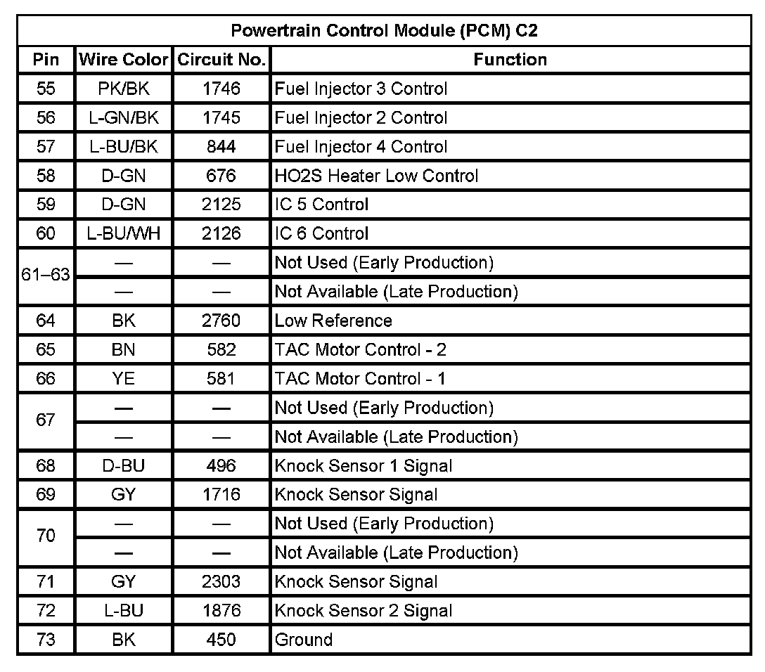 Powertrain Control Module (PCM) C2 (Pin 55 To 73):