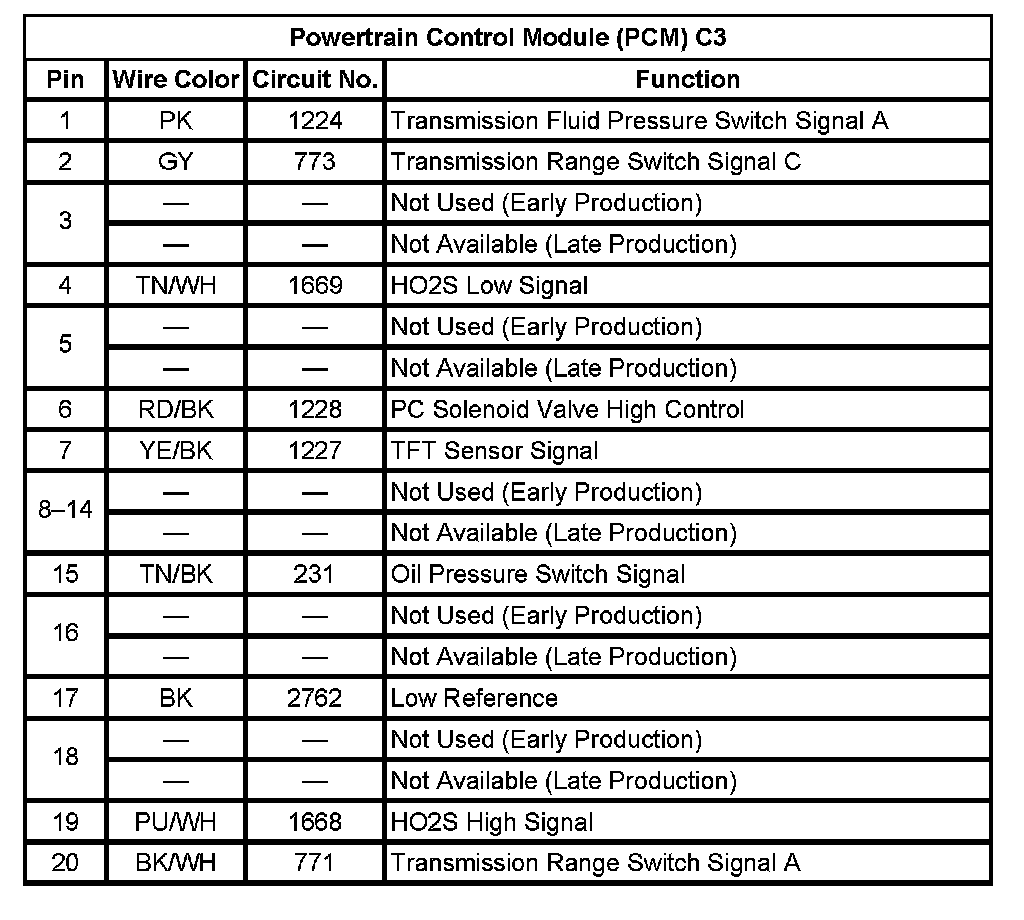 Powertrain Control Module (PCM) C2 (Pin 1 To 14):