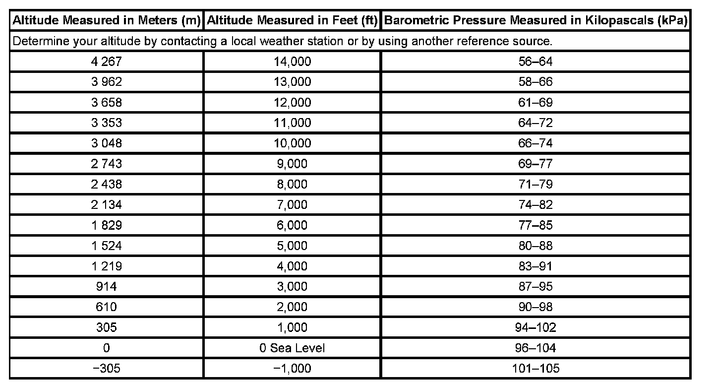 Altitude Versus Barometric Pressure