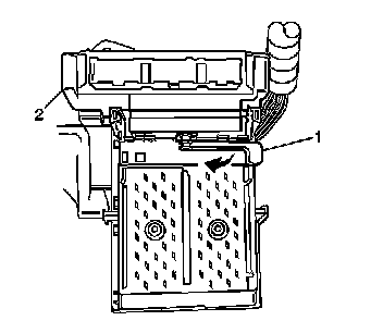 2. Rotate the BCM retaining lever (2) to secure the BCM to the console accessory wiring junction block.