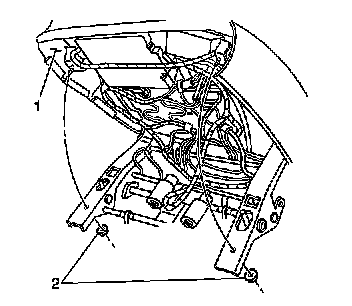 2. Adjust the front seat assembly up and forward in order to access the fasteners (1) at the rear of the front seat cushion assembly.