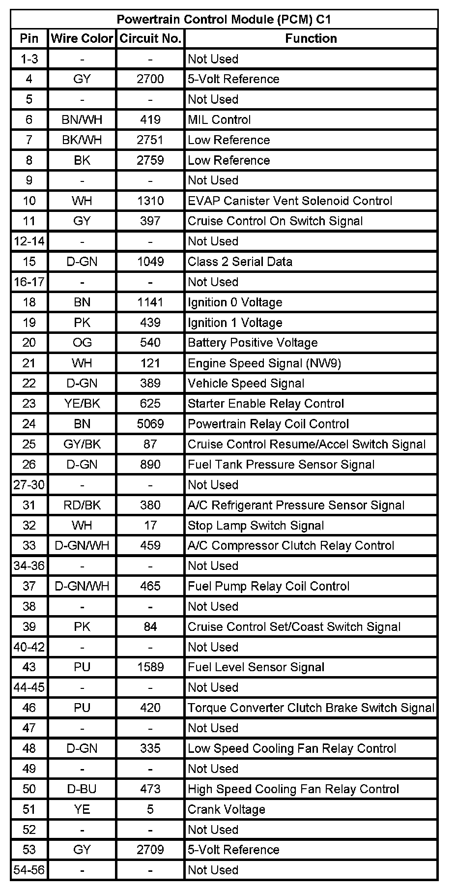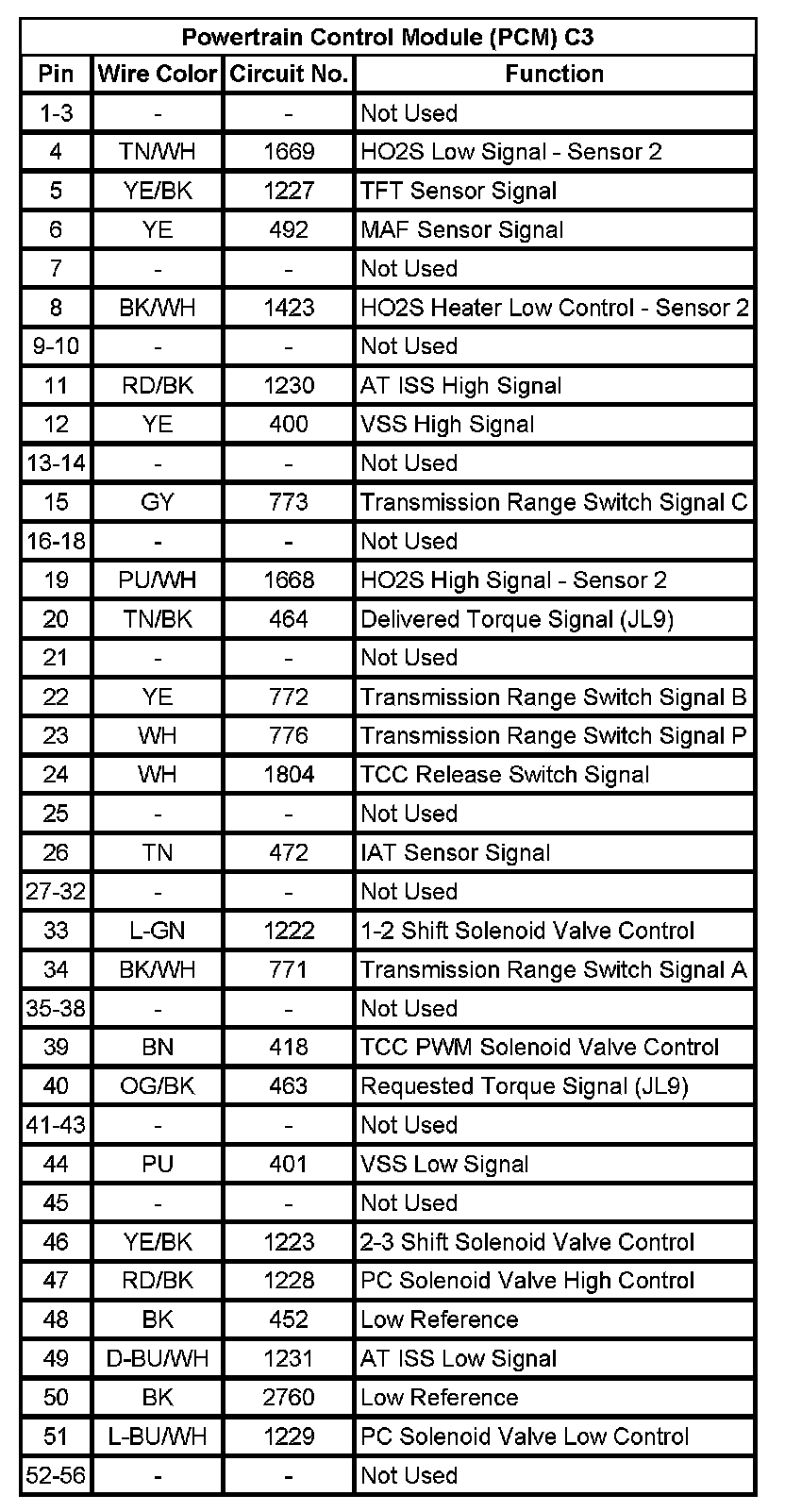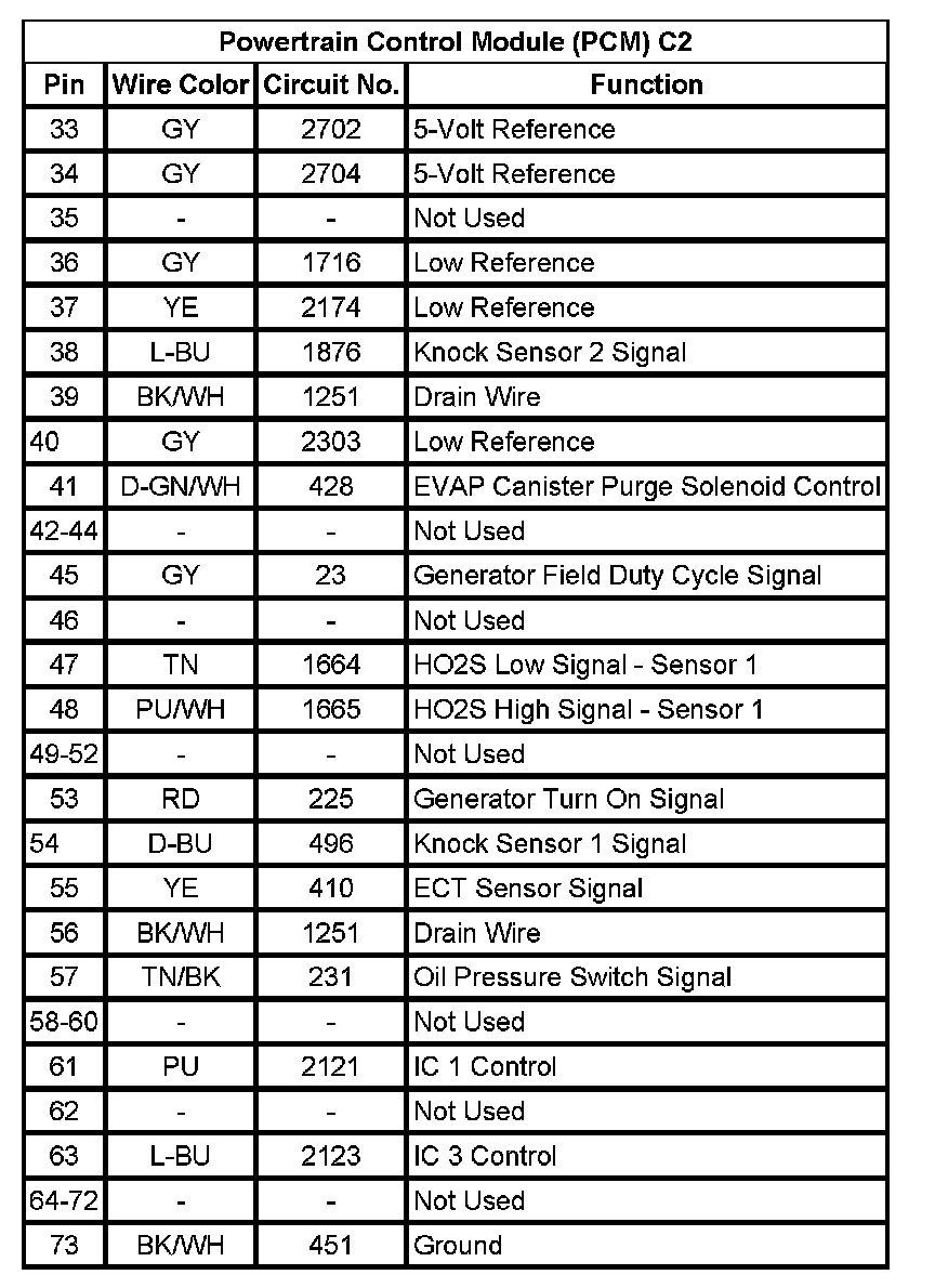 Powertrain Control Module (PCM) C2 (Pin 33 To 73):