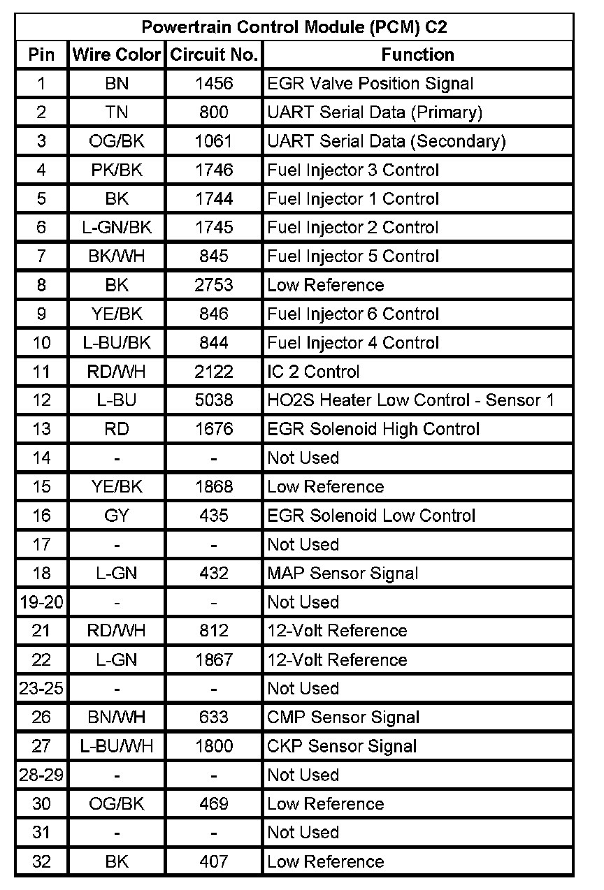 Powertrain Control Module (PCM) C2 (Pin 1 To 32):