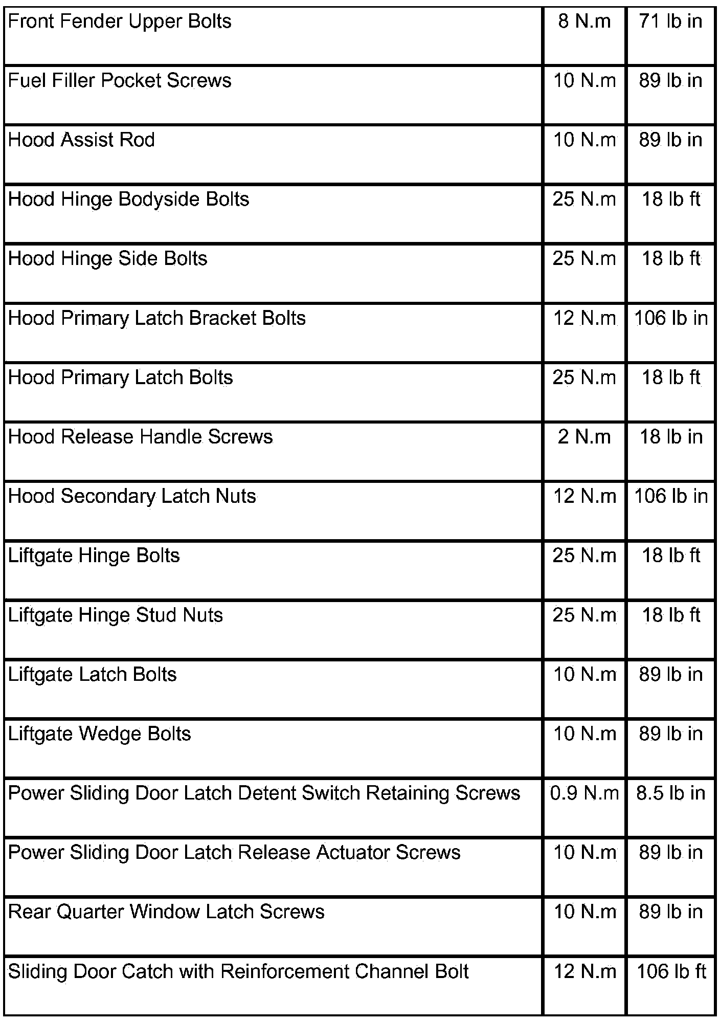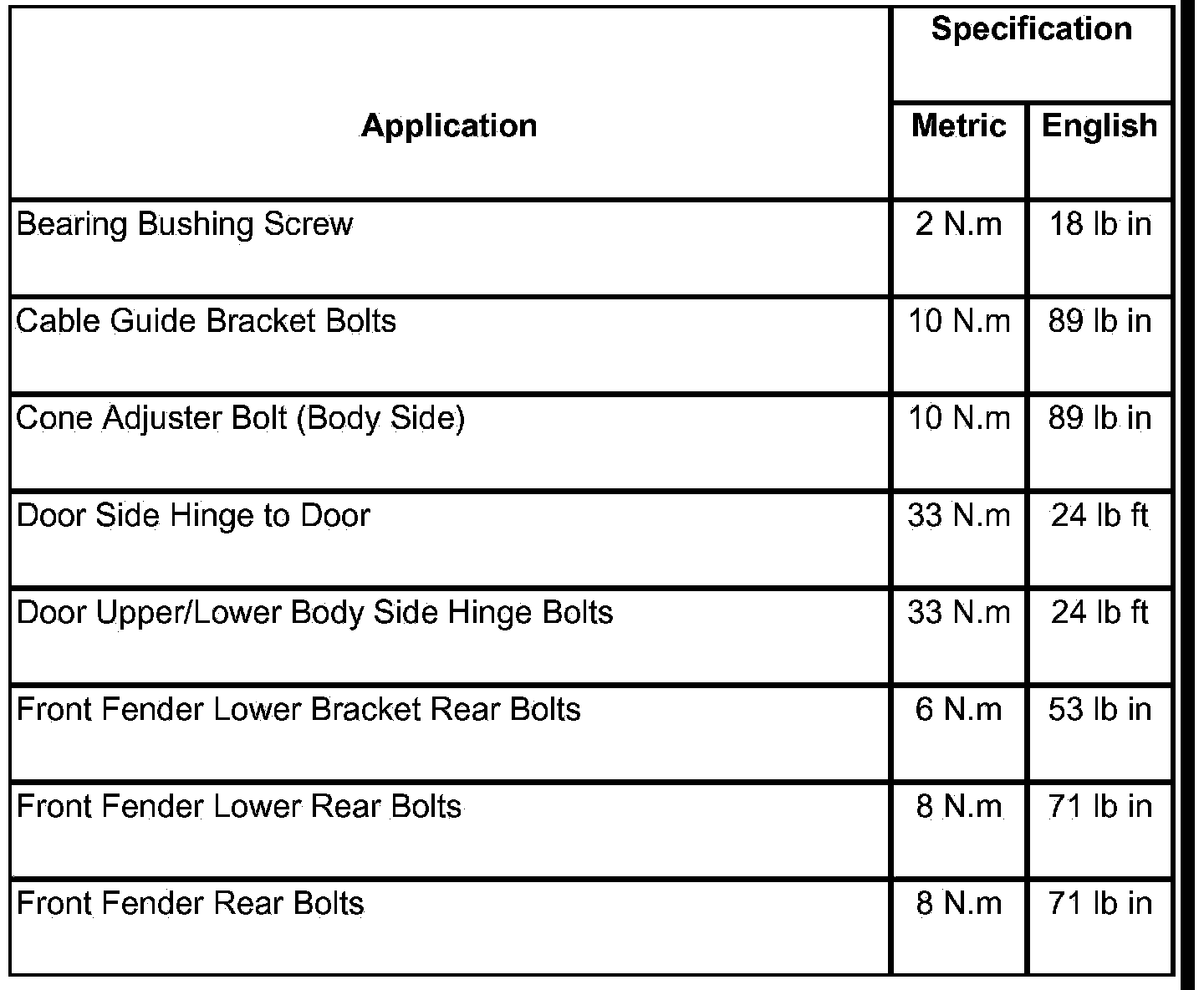 Fastener Tightening Specifications