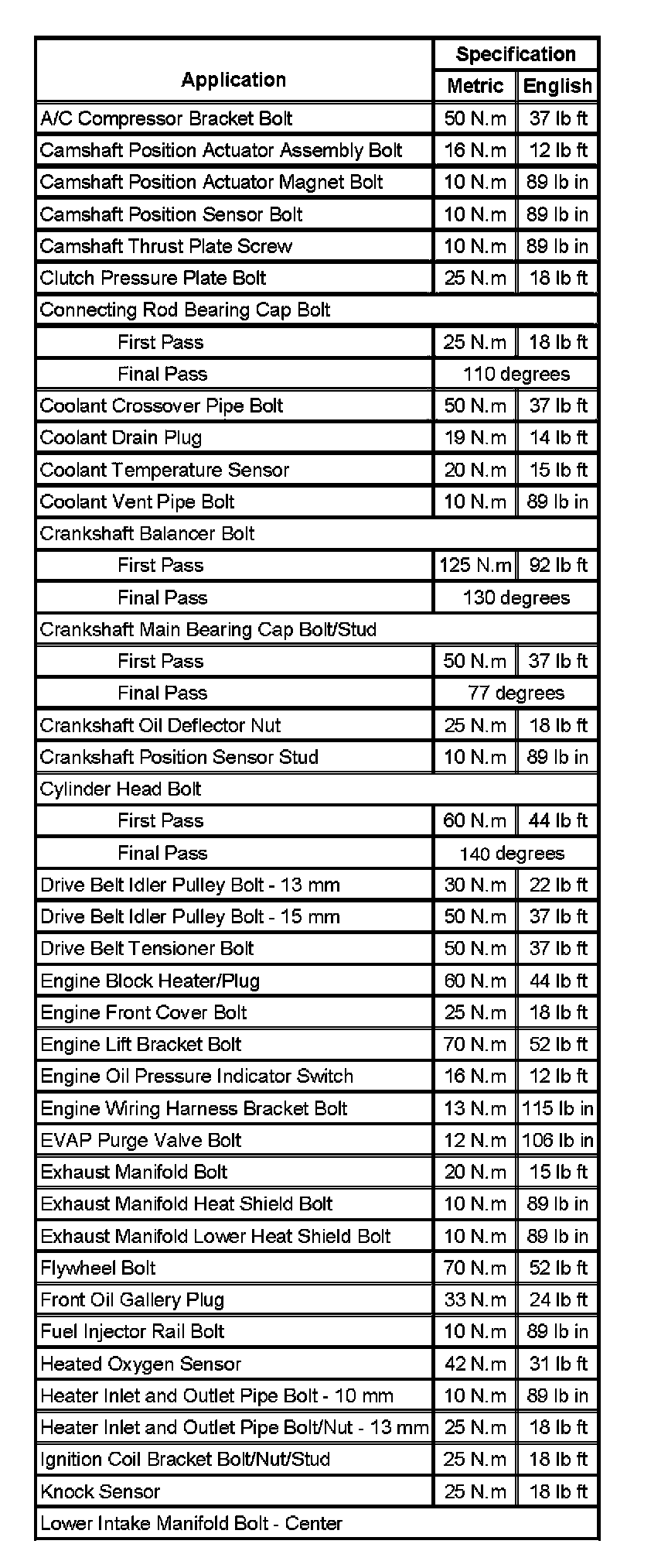 Fastener Tightening Specifications (Part 1):