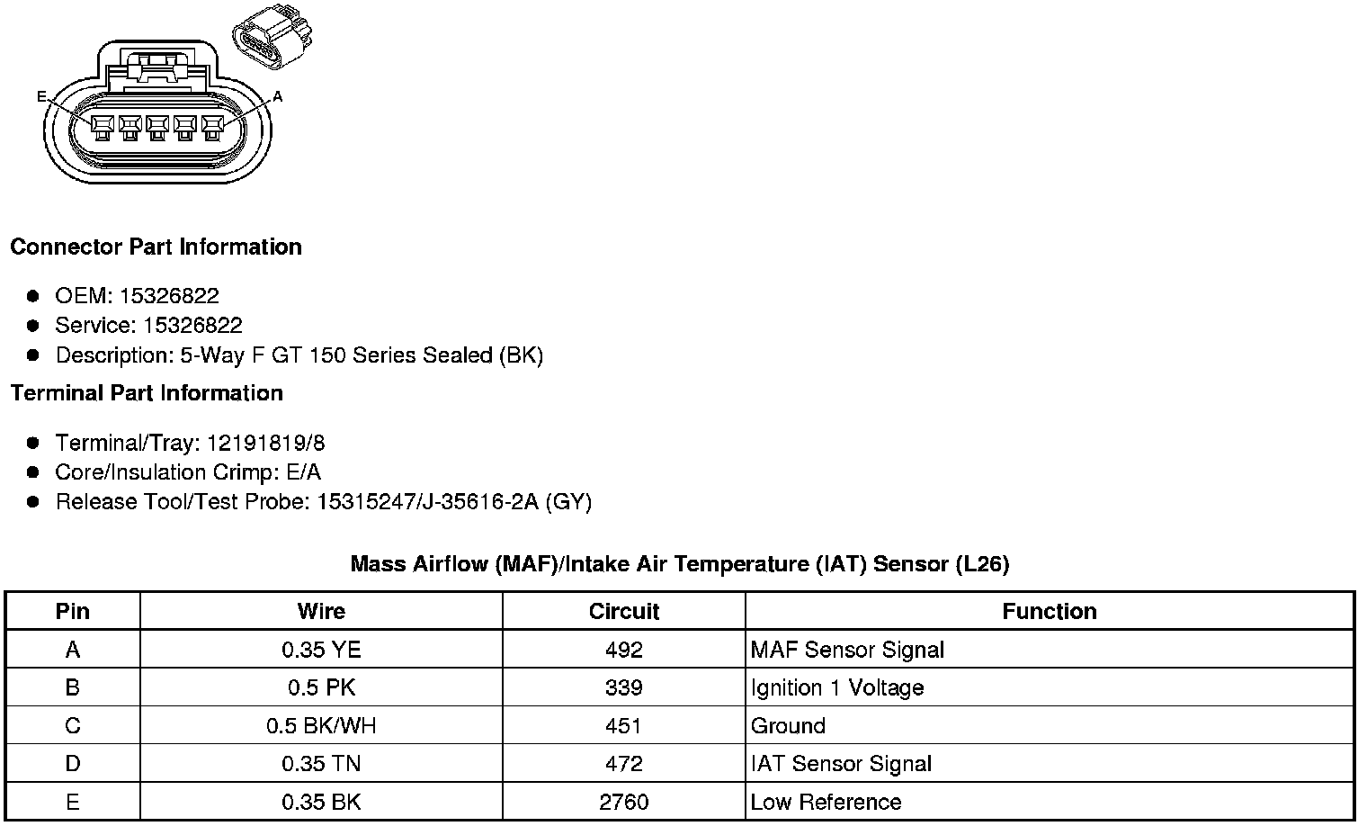 Mass Airflow (MAF)/Intake Air Temperature (IAT) Sensor (L26)