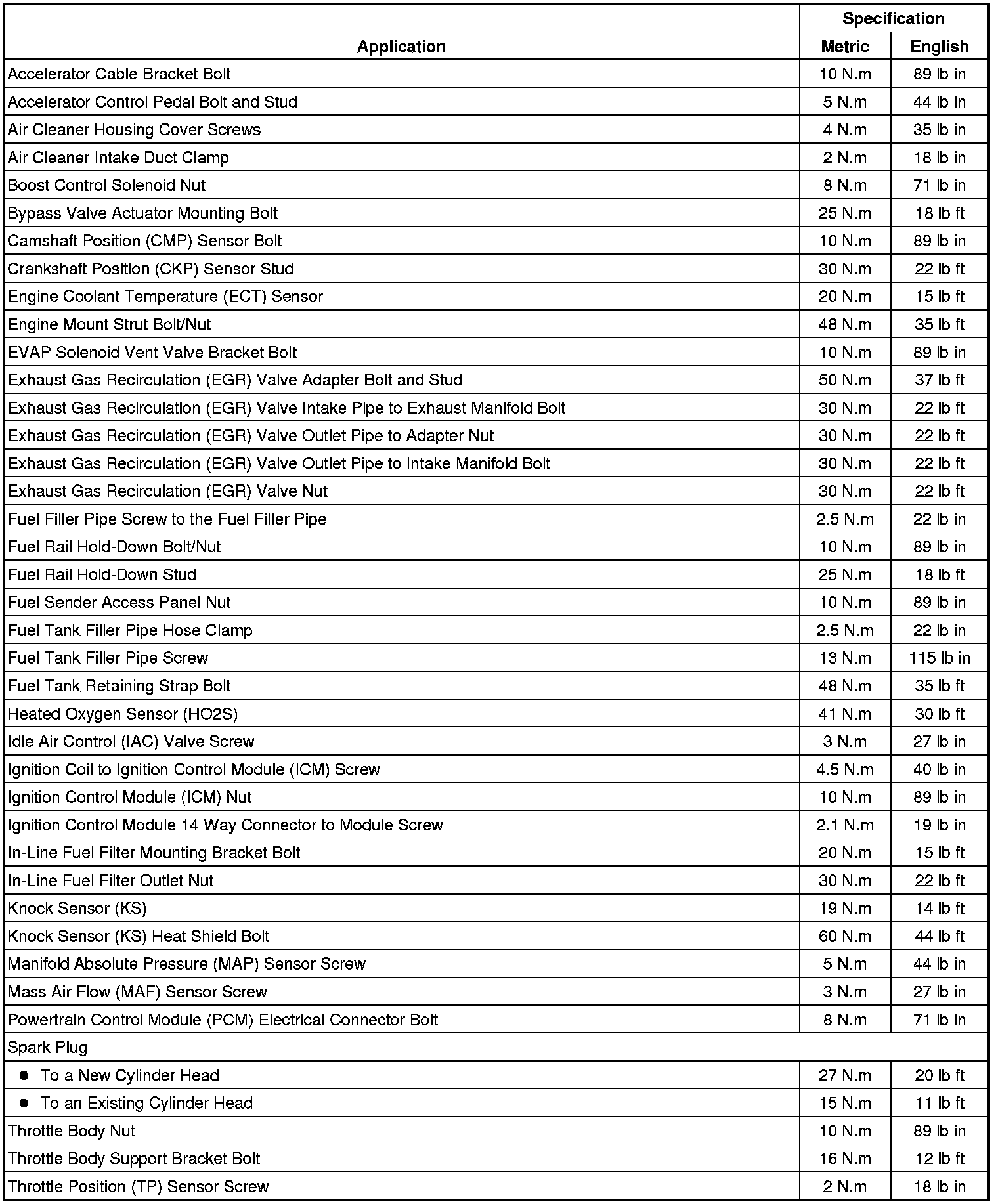 Fastener Tightening Specifications