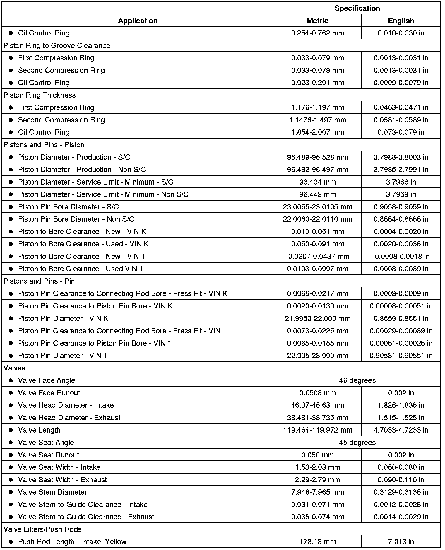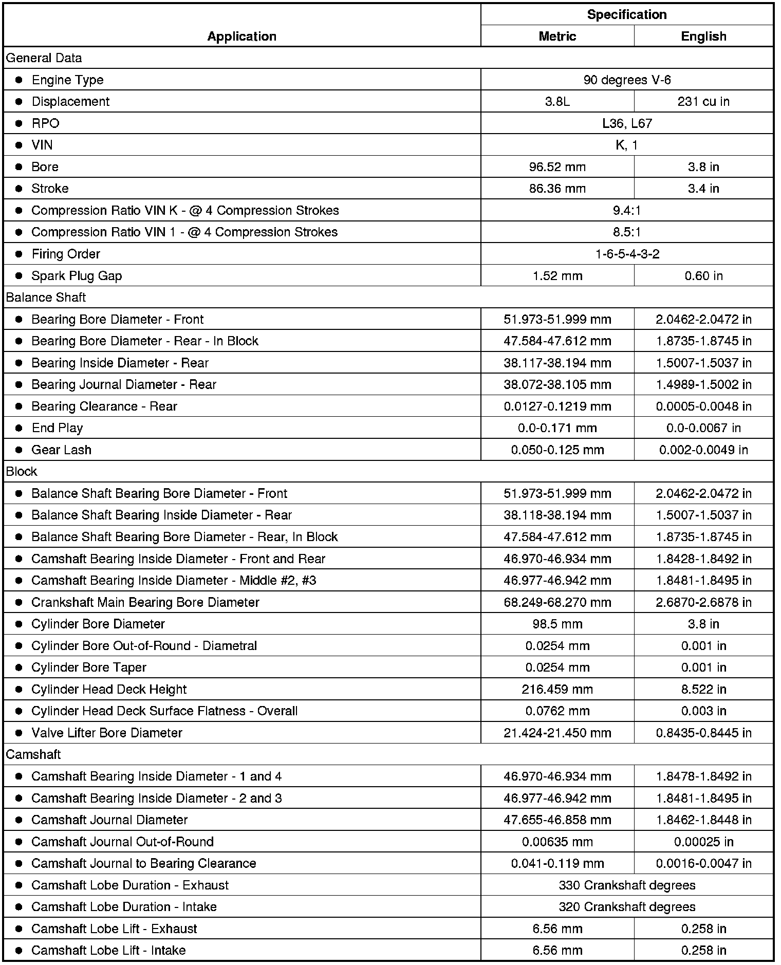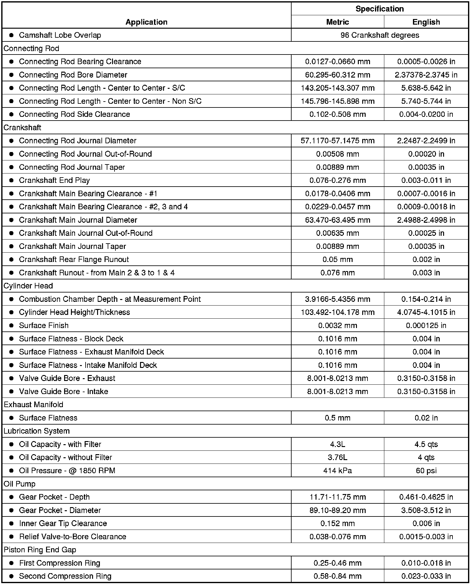 Engine Mechanical Specifications
