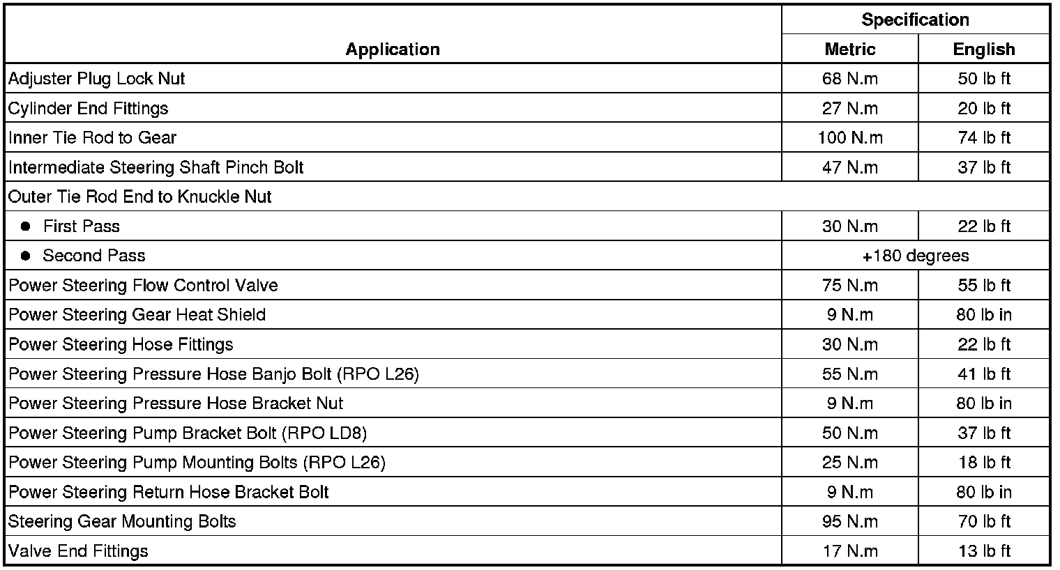 Fastener Tightening Specifications