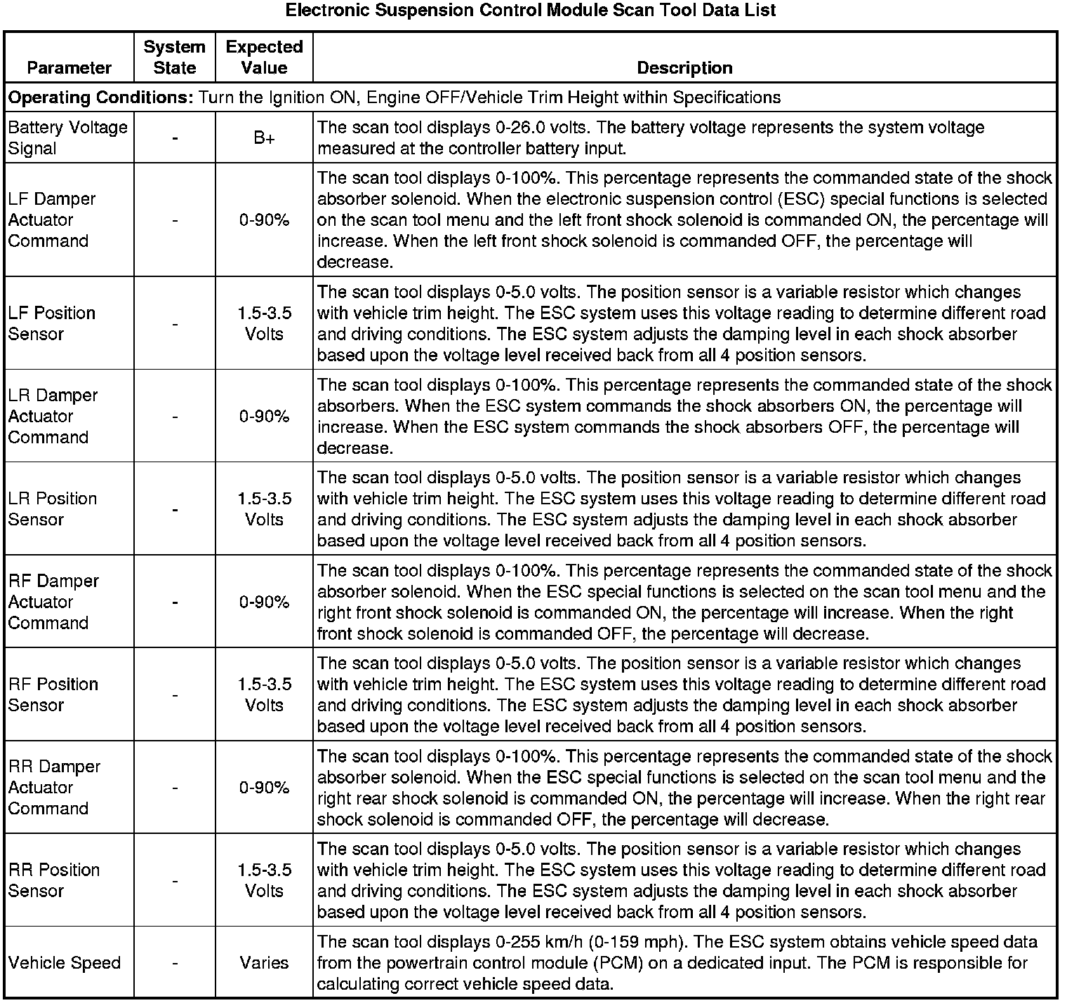 Electronic Suspension Control Module Scan Tool Information