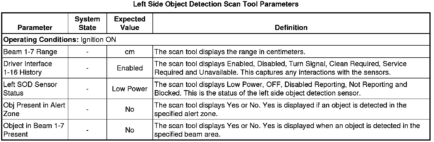 Side Object Sensor Module Scan Tool Information (Left Side Object Detection Module)
