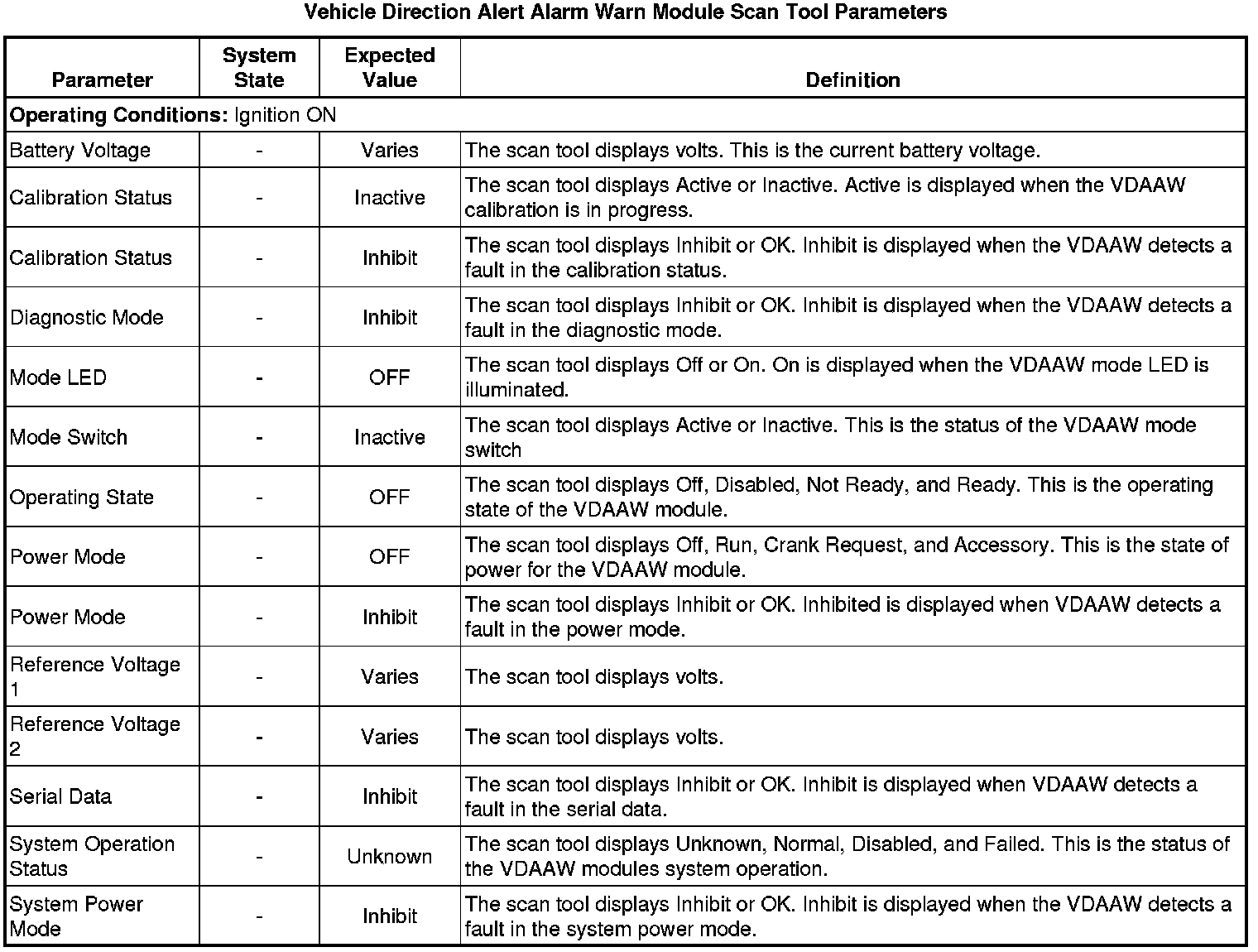 Vehicle Direction Alert Alarm Warning Module Scan Tool Information