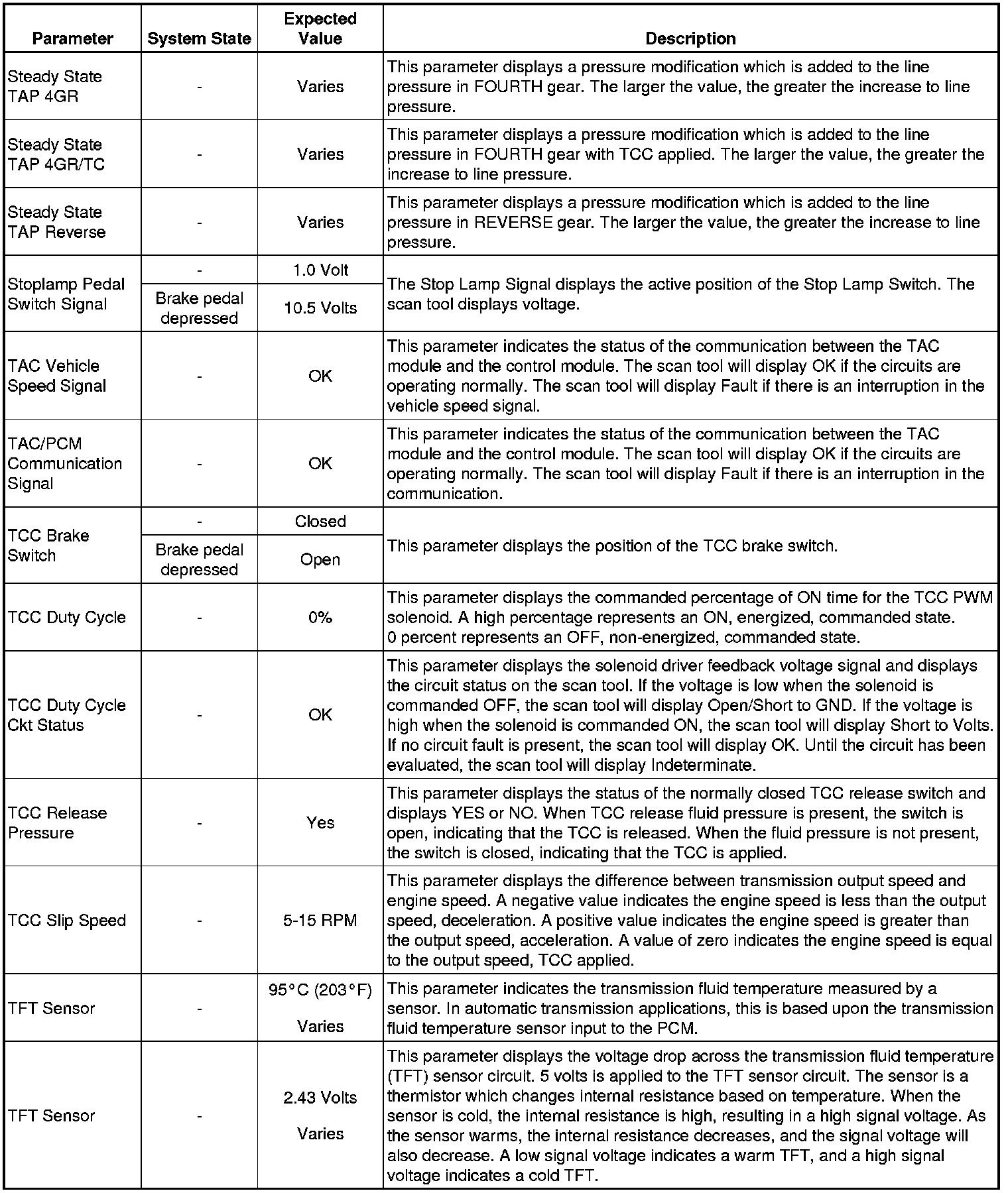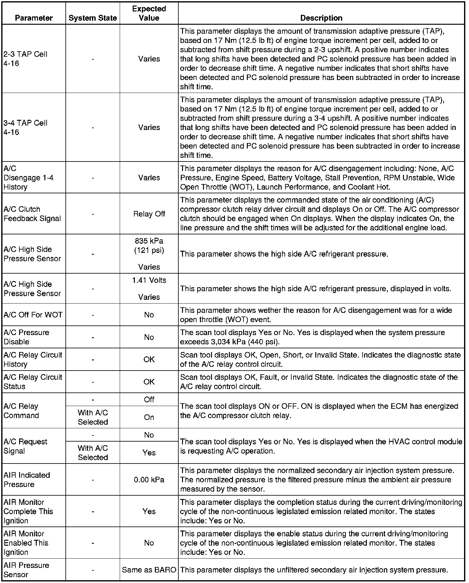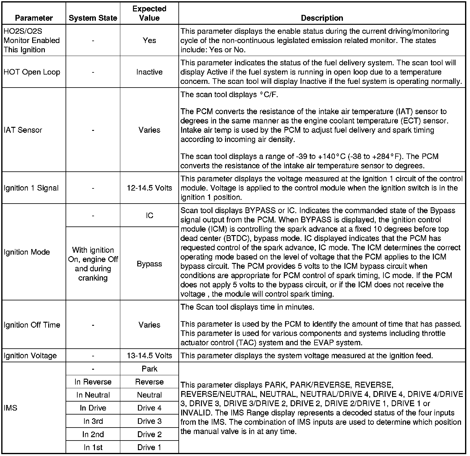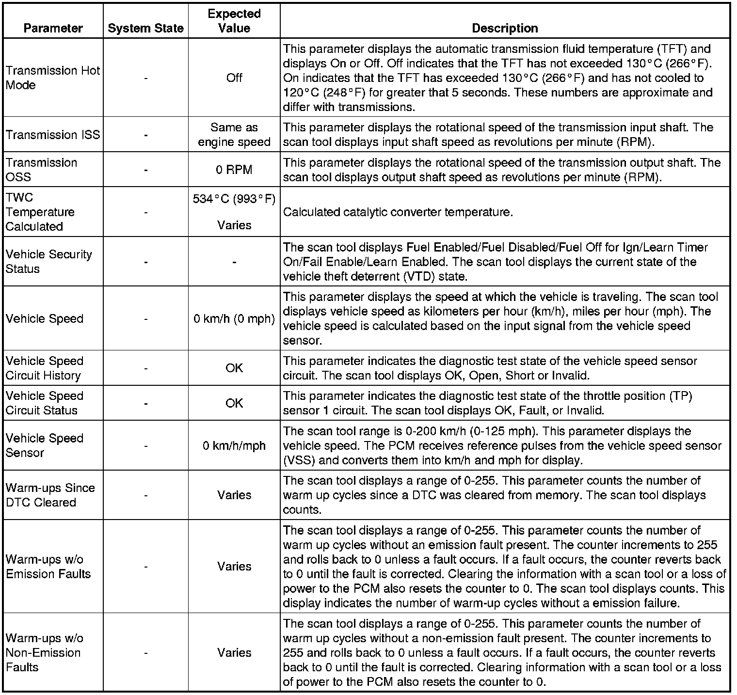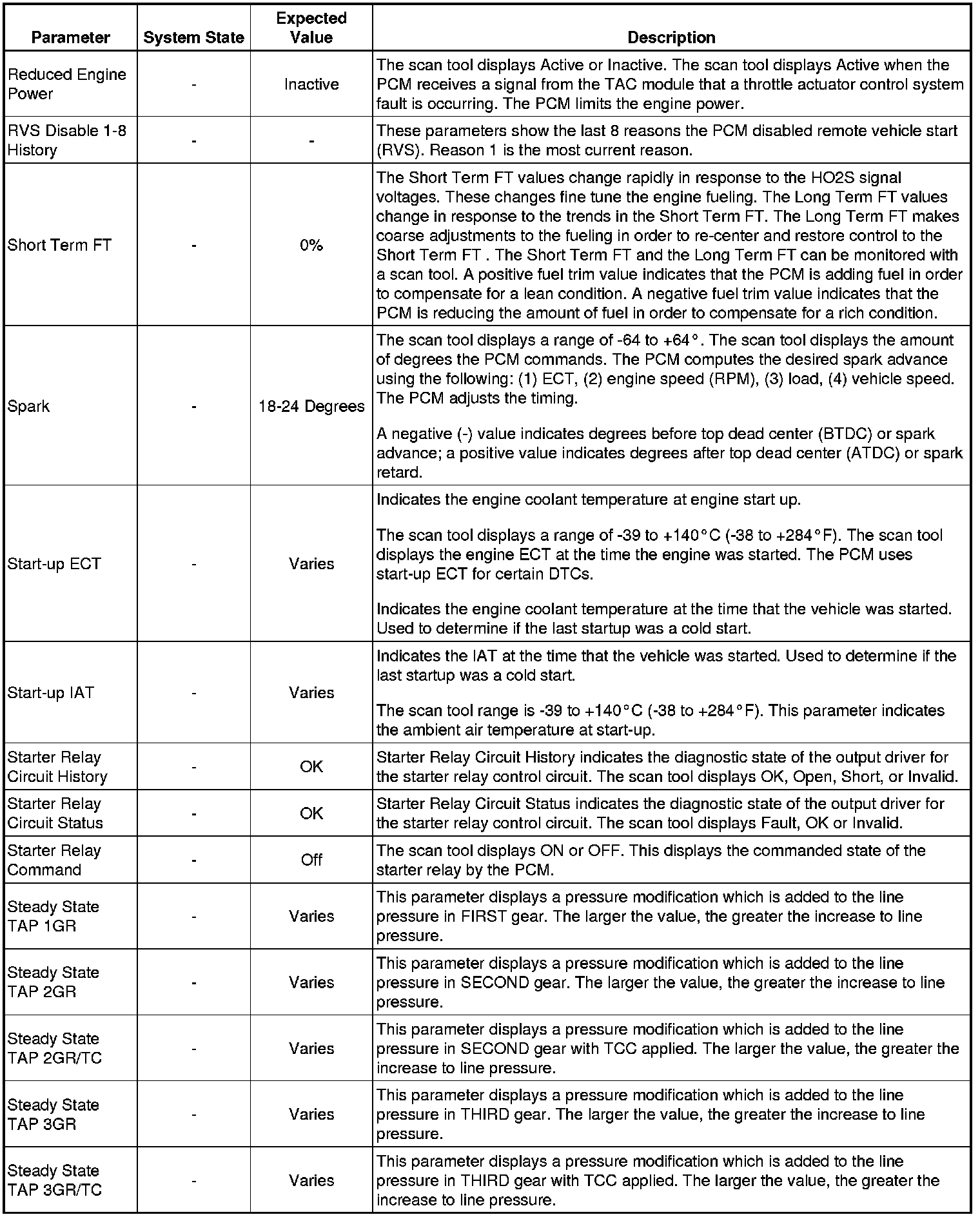Only the parameters listed below are referenced in this service manual for use in diagnosis. If all values are within the typical range described below, refer to for diagnosis.