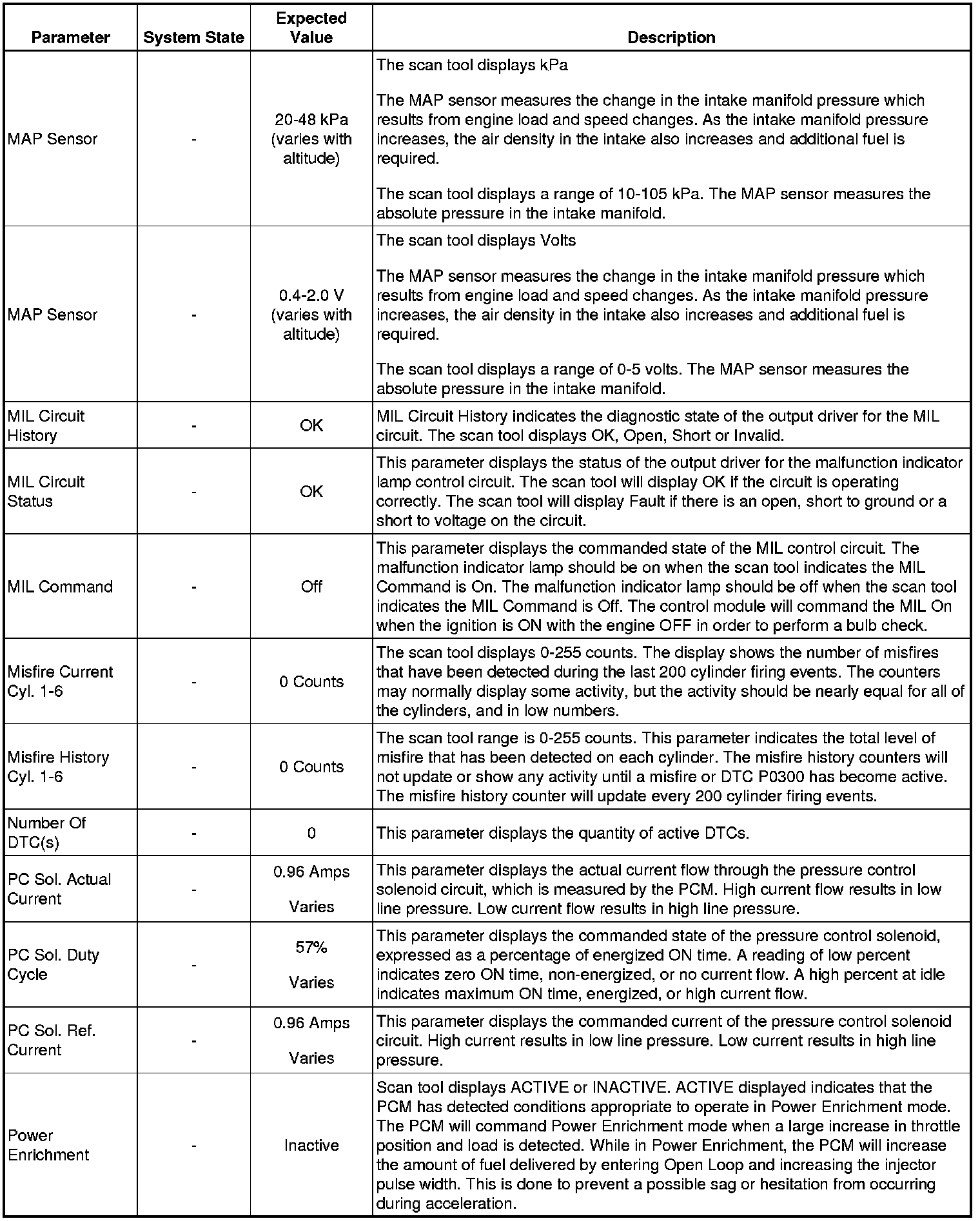 The Engine Control Module Scan Tool Data List contains all engine-related parameters that are available on the scan tool. The list is arranged in alphabetical order. A given parameter may appear in any one of the data lists, and in some cases may appear more than once, or in more than one data list in order to group certain related parameters together.