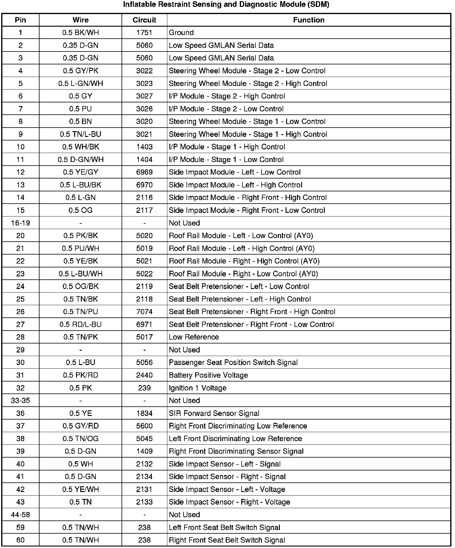 Inflatable Restraint Sensing and Diagnostic Module (SDM)