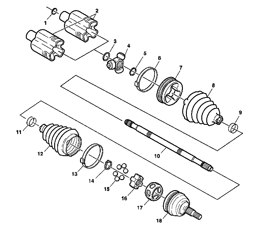 Wheel Drive Shafts Disassembled Views