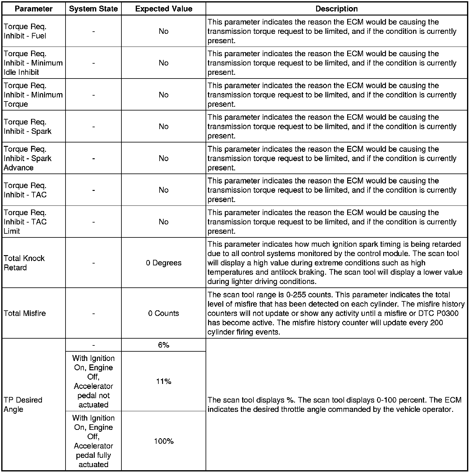 The Engine Control Module (ECM) Scan Tool Data List contains all ECM-related parameters that are available on the scan tool. The list is arranged in alphabetical order. A given parameter may appear in any one of the data lists, and in some cases may appear more than once, or in more than one data list in order to group certain related parameters together.