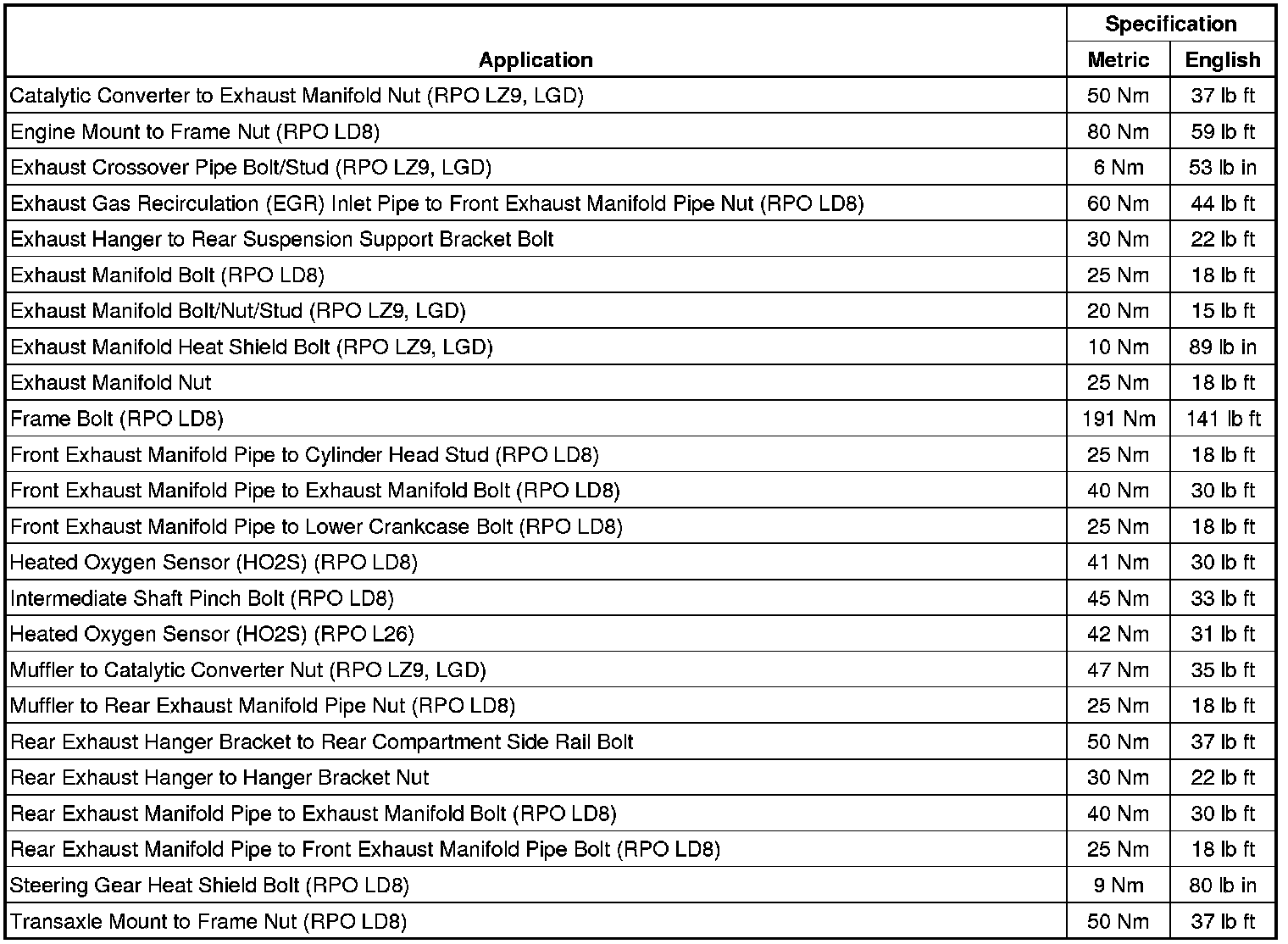 Fastener Tightening Specifications