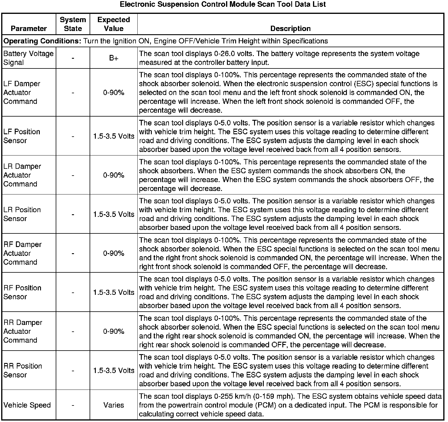 Electronic Suspension Control Module Scan Tool Information